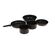 Состав комплекта: Набор посуды из 10 предметов (2 сковороды, 2 ковша, вок, 2 пластиковые крышки, лопатка, ложка, съемная ручка).