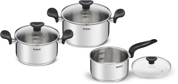 С набором посуды Tefal Primary Е308S674 вам не придется беспокоиться о результате - с этим набором посуды любое блюдо получится невероятно вкусным, а процесс приготовления станет простым и приятным. Осваивайте новые рецепты благодаря эргономичному дизайну: на внутренней поверхности стенки расположена удобная мерная шкала, края кастрюль оснащены носиками для слива жидкости без брызг, а элегантная стеклянная крышка для удобного наблюдения за процессом приготовления. Специальное отверстие для выпуска пара сохраняет оптимальное давление и уровень влаги внутри для сочных и насыщенных блюд. Посуда выполнена из долговечной нержавеющей стали сплава 18/10. Эргономичные ручки не нагреваются и обеспечивают комфортное и безопасное использование день за днем. Готовьте все, что вы любите - от спагетти болоньезе и чили кон карне до вареной кукурузы, домашнего попкорна, наваристых супов и многого другого. Подходит для любых плит, включая индукцию.