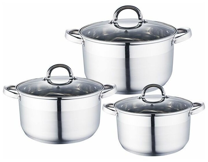 материал крышек: стекло; материал ручек: сталь; многослойное дно; кастрюля 16х9.5, 18х10.5, 20х11.5 см