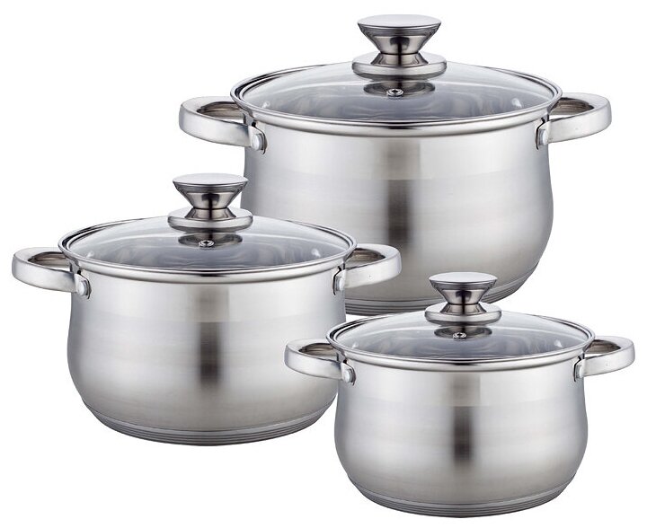 В наборе 6 предметов:кастрюля со стеклянной крышкой - 18х11,5см; 2,9л