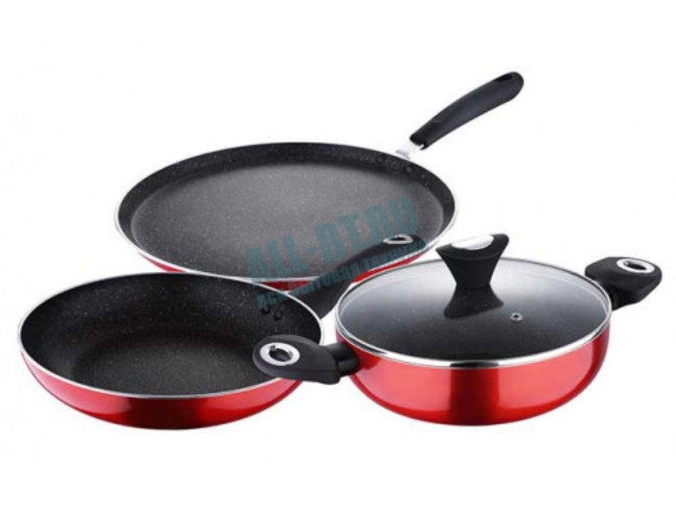 Набор посуды Wellberg WB-2686 Metalica — качественная посуда для ежедневной готовки. В комплекте 2 сковороды: универсальная для жарки и блинная, которая также подойдет для оладий. Кастрюля с низкими стенками удобна для приготовления плова и жаркого, соусов и разнообразных каш.