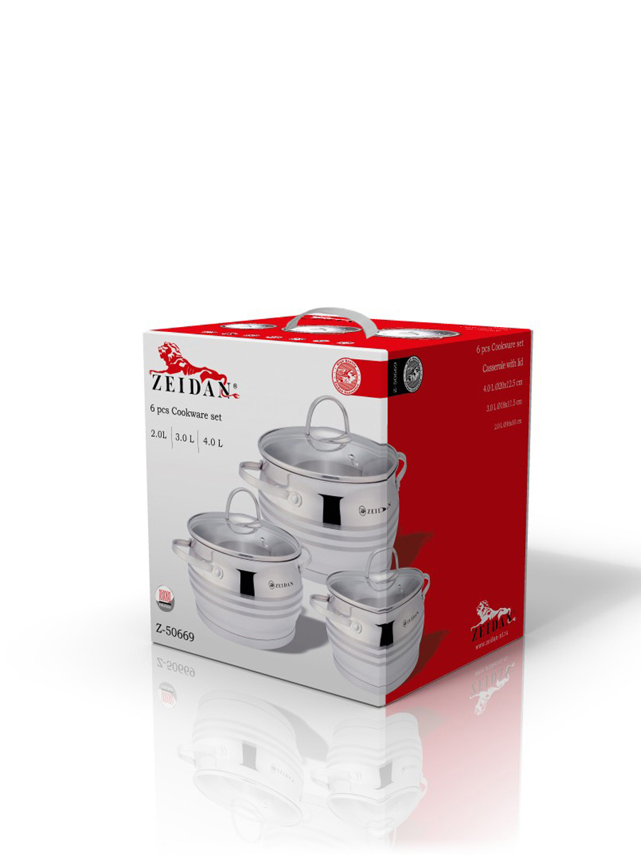 Набор посуды, 6 предметов (3 кастрюли, 3 крышки);