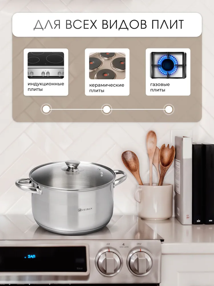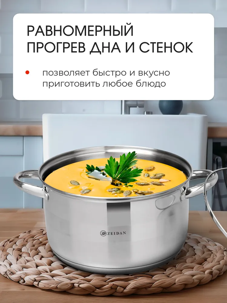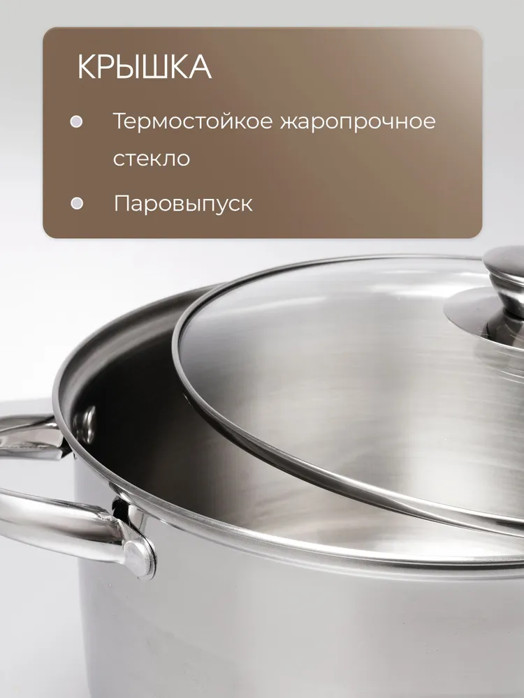 Особенности посуды: Крышка в комплекте, Можно мыть в посудомойке, С толстым дном, Жаропрочная, Ненагревающиеся ручки