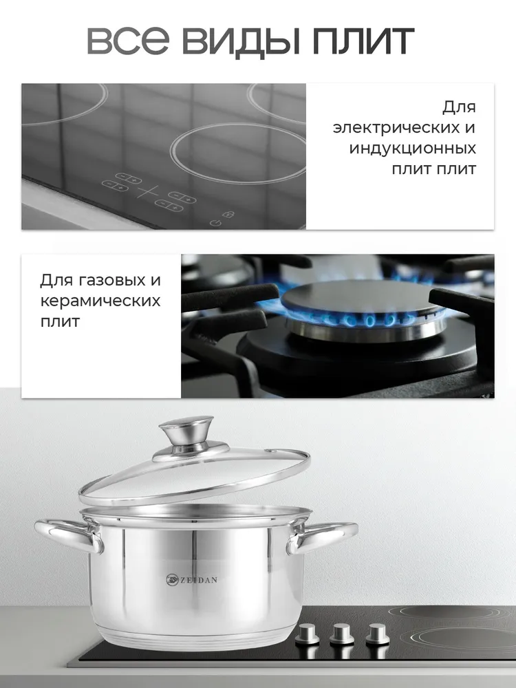 Совместимые плиты: Для газовых плит, Для галогеновых конфорок, Для индукционных плит, Для стеклокерамических плит, Для электрических плитОтзывы