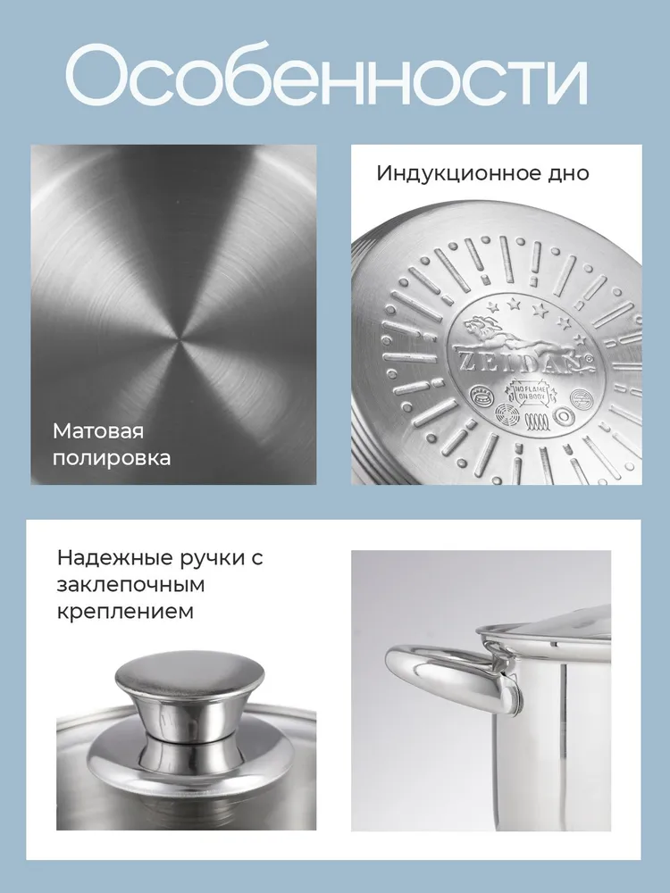 Особенности посуды: Двойные стенки, Крышка в комплекте, Мерные деления, Ненагревающиеся ручки, Можно мыть в посудомойке, Жаропрочная, С толстым дном, Профессиональная посуда