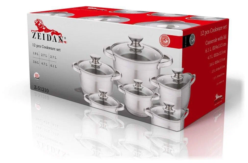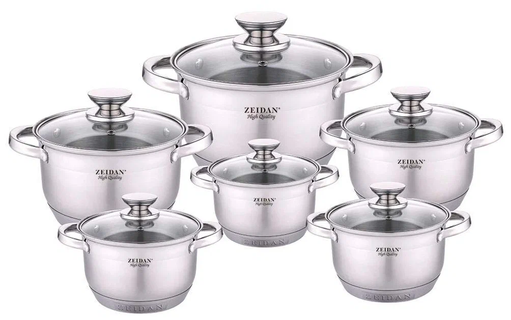 6 кастрюль 1.9 л, 2.7 л, 2.7 л, 3.6 л, 4.7 л, 6.1 л, крышка (6 шт.)
