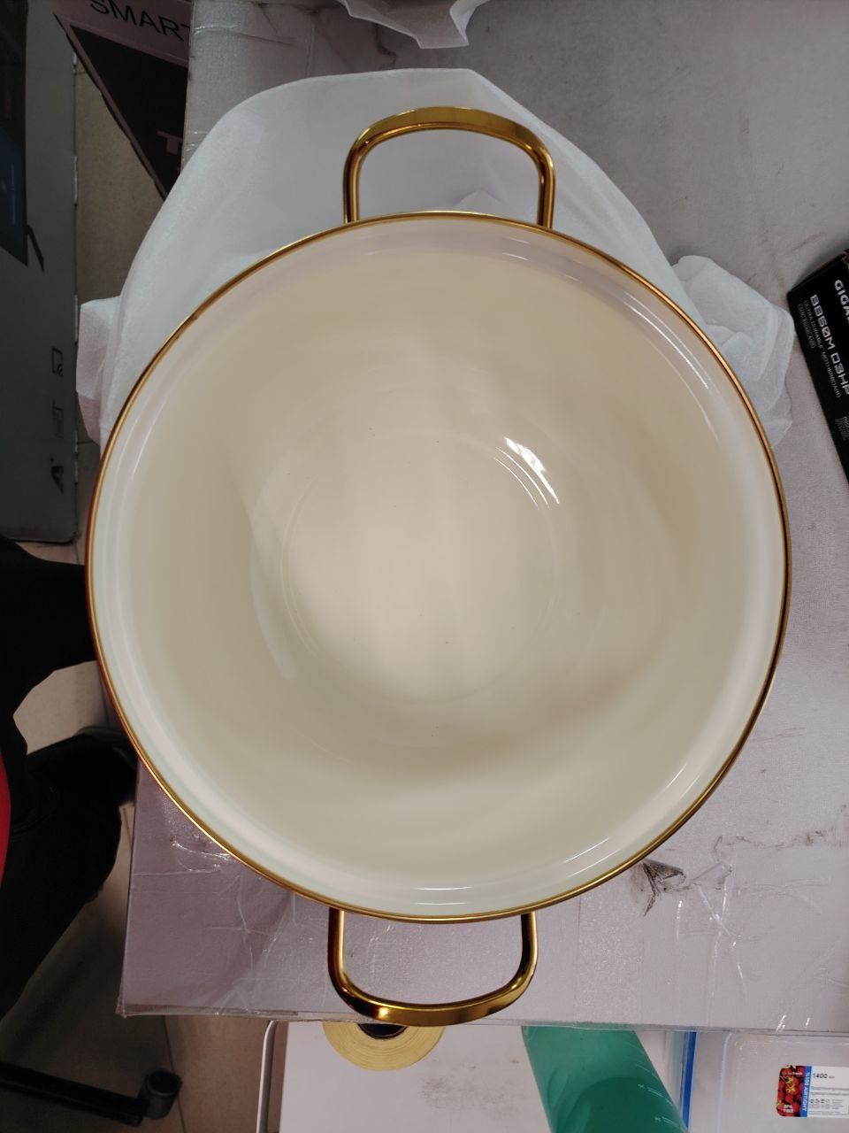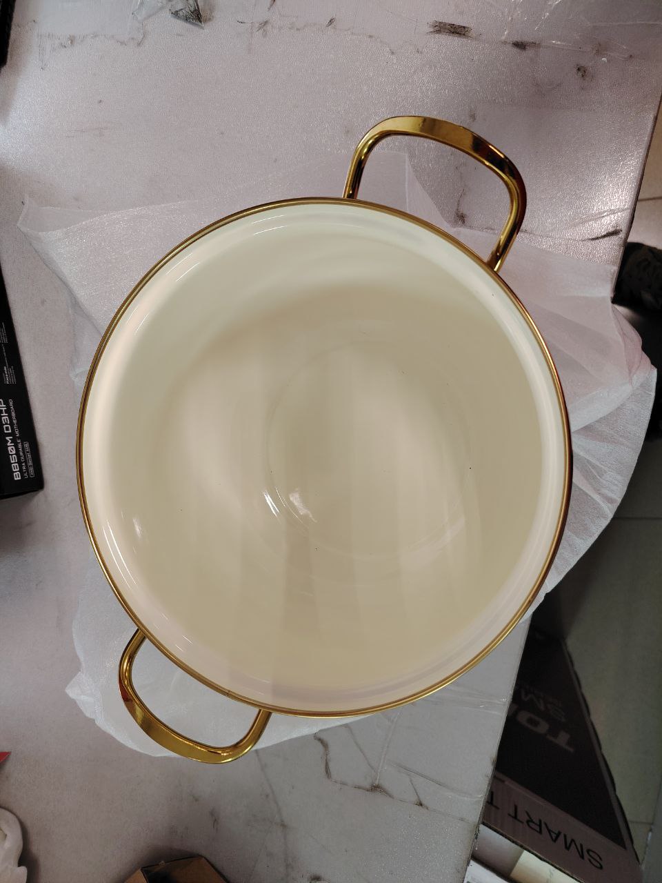 Ручки на корпусе и крышке "под золото".