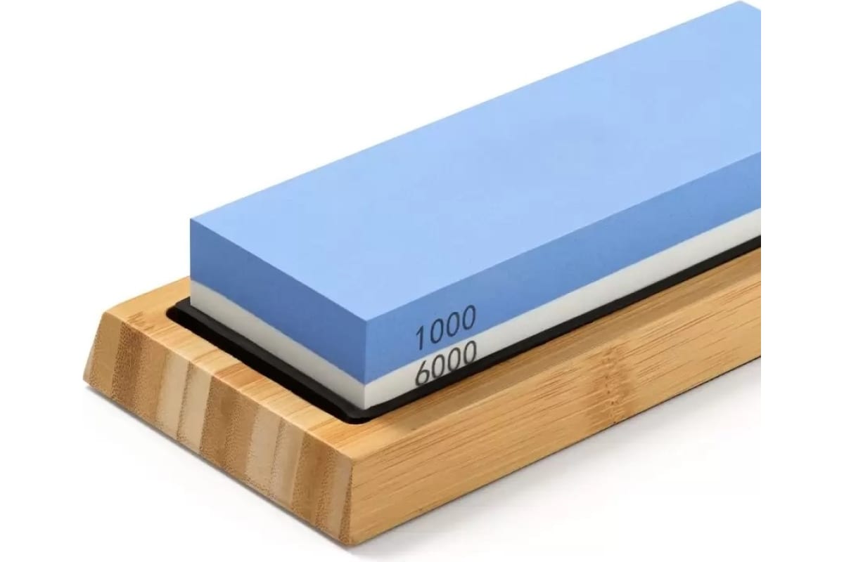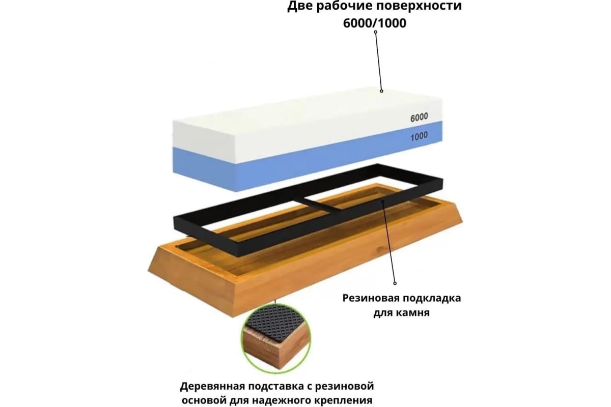 Двусторонний точильный камень для заточки ножей URM водный с силиконовым держателем, на подставке D01498 предназначен для заточки лезвий.