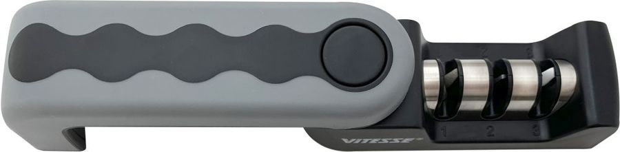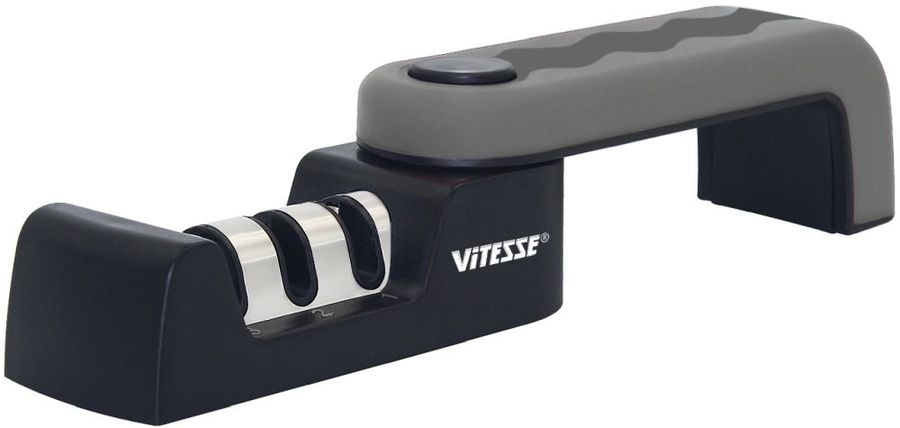 Точилка для ножей Vitesse VS-2729 предназначена для заточки кухонных ножей с металлическими и керамическими лезвиями. 3-ступенчатая шлифовальная конструкция гарантирует эффективность заточки. Эргономичная складная ручка и прорезиненное основание с нескользящим покрытием.