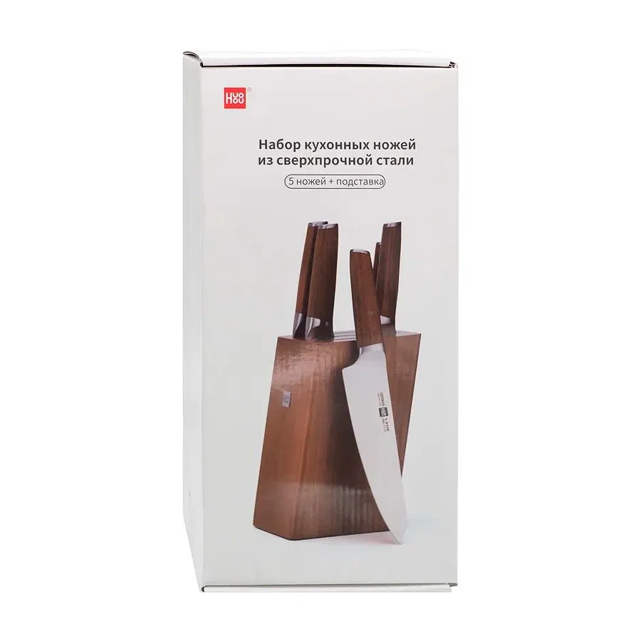 Набор ножей из сверхпрочной немецкой стали (5 ножей + подставка) HUOHOU HU0158 – полезная вещь для любой кухни!