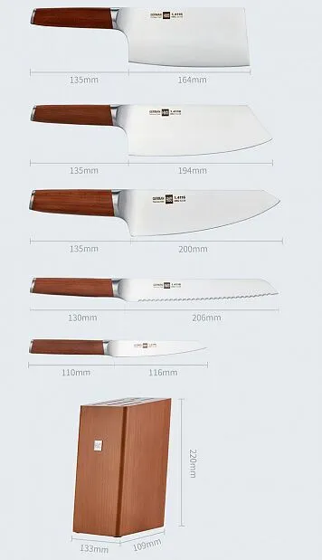HUOHOU HU0158 отличается от иных наборов ножей HUOHOU использованием топовых материалов. Лезвия всех ножей изготавливаются из сверхпрочной стали марки 1.4116, произведенной в Германии на заводах Thyssen-Krupp. Различные виды соединений сделаны при помощи, не оставляющей швов лазерной сварки, сами же лезвия ручной работы. Рукоятки ножей сделаны из высококачественного карбонизированного дерева и отлично отполированы. Подставка для ножей также сделана из превосходного карбонизированного дерева, выглядит на 5+. Прочность ножей составляет HRC55,5+-2,5, что более достаточно для всех кухонных задач. Набор HUOHOU HU0158 выделяется не только среди конкурентов, но и среди иных наборов Huohou.Набор HUOHOU HU0158 позволит решить практически любые предназначенные для кухонных ножей задачи максимально удобно и быстро. Для мяса, хлеба и фруктов в наборе идет по отдельному ножу. Нож-слайсер предназначен для нарезки продуктов тонкими и аккуратными ломтиками, с прочими задачами справится нож шеф-повара.Если придет время после длительного использования заточить ножи, обратите внимание на точилки Huohou HU0045 и HU0066. Кухонные аксессуары HUOHOU – изысканность во всем, комфорт и наслаждение для Вас.