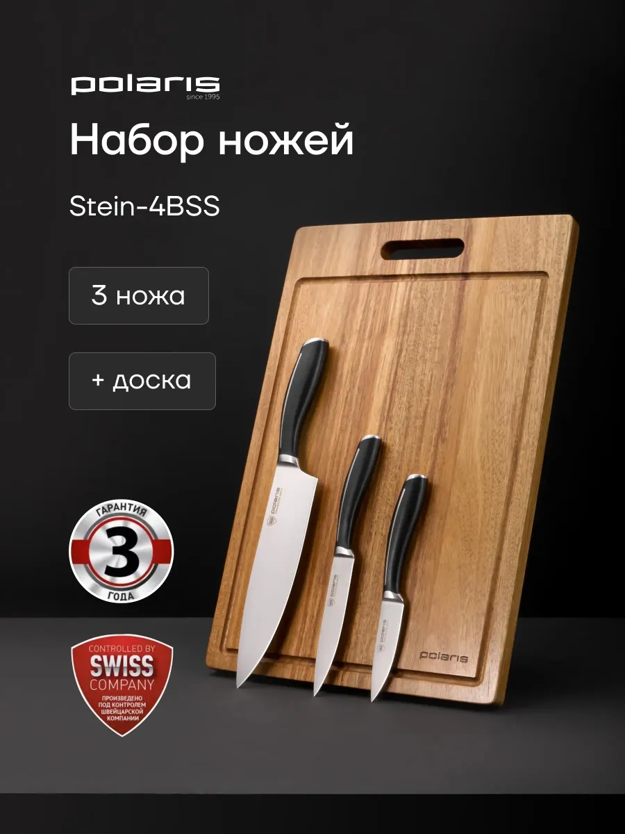 Набор ножей Polaris Stein - 4BSS с разделочной доской - это выбор для истинного повара и любителя кулинарии. В нем вы найдете все необходимые ножи для различных задач на кухне.