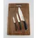 Набор включает в себя цельнокованный поварской нож - лезвие 20 см., нож кухонный универсальный – лезвие 12,5 см, овощной нож для чистки и нарезки овощей и фруктов – лезвие 9 см, разделочная доска размером 45 х 30 х 2 см из натурального дерева