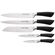 Нож поварской 20см, Нож для нарезки 20см, Нож сантоку 18 см. Нож универсальный 12,5см, Нож для чистки овощей и фруктов, 9см, Удобная подставка для безопасного хранения ножей