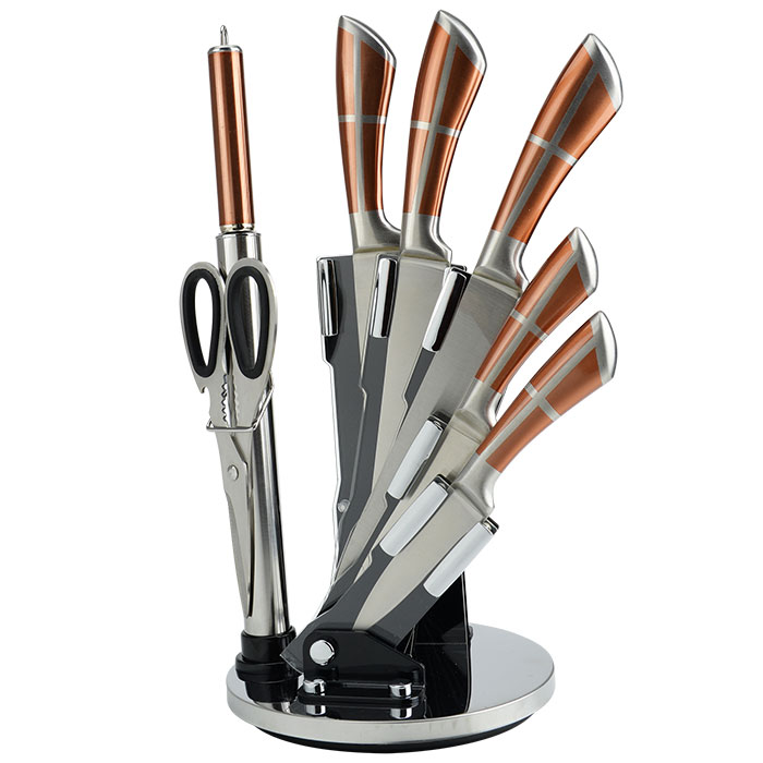 Мусат ,Нож для нарезки хлеба ,Нож для чистки овощей ,Нож поварской ,Нож разделочный ,Нож универсальный ,Ножницы кухонные ,Подставка