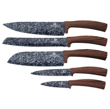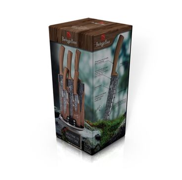 Комплект | кухонный нож поварской (20 см); кухонный нож для хлеба (20 см); кухонный нож santoku (17.7 см); кухонный нож универсальный (12.5 см); кухонный нож для чистки овощей (9 см); подставка | |