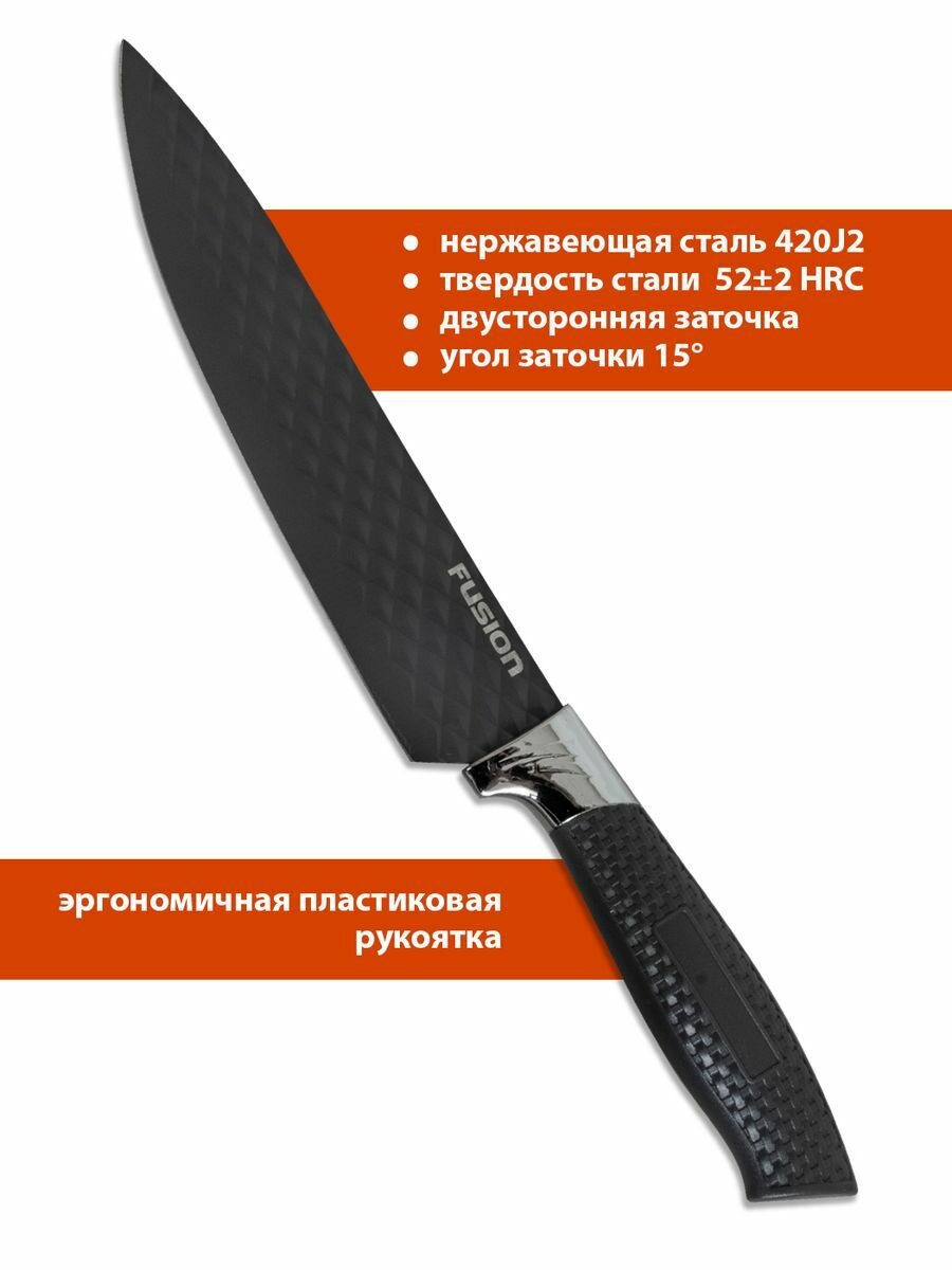 В набор входит: Нож для чистки овощей и фруктов, универсальный нож, нож сантоку, нож для хлеба, шеф-нож поварской, ножницы кухонные. Многофункциональный комплект и 5 кухонных ножей и ножниц. Возможности этого набора охватывают весь необходимый на кухне спектр действий. Они позволяют без проблем работать практически с любыми продуктами.