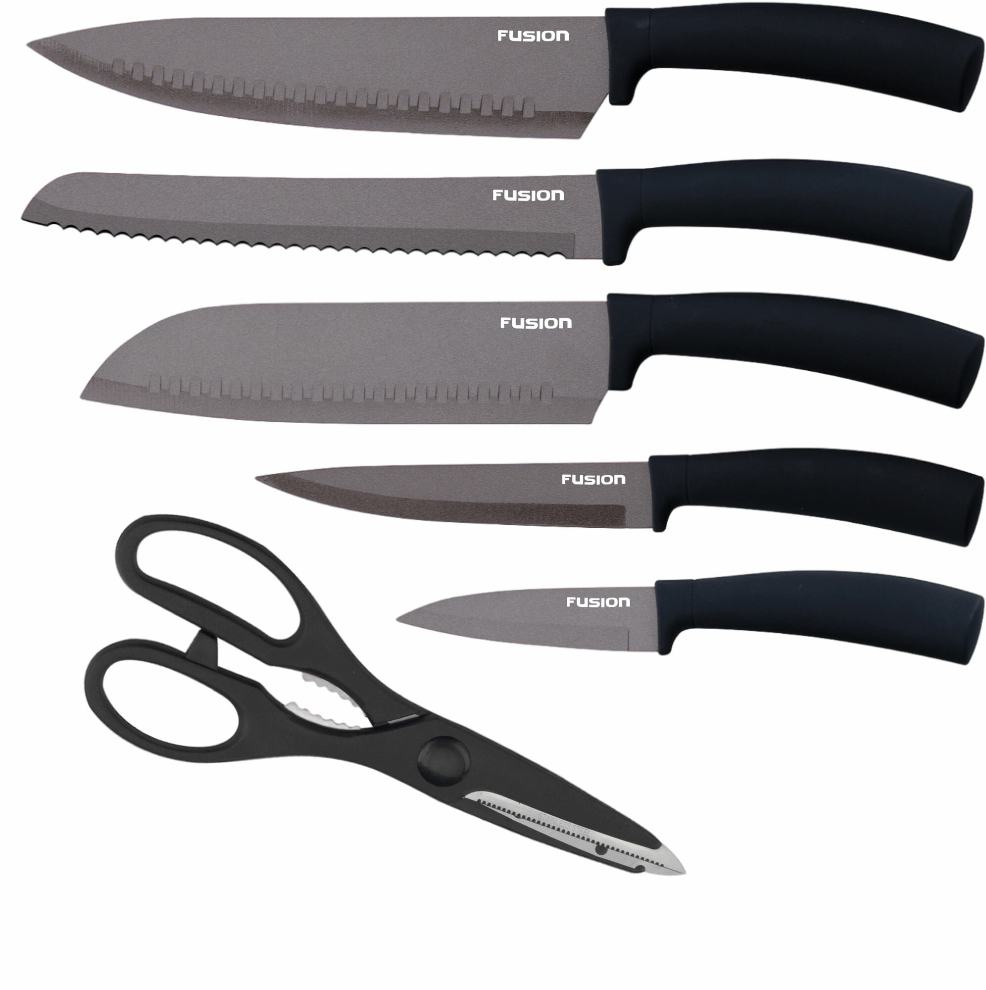 Многофункциональный комплект и 5 кухонных ножей и ножниц. Возможности этого набора охватывают весь необходимый на кухне спектр действий. Они позволяют без проблем работать практически с любыми продуктами.