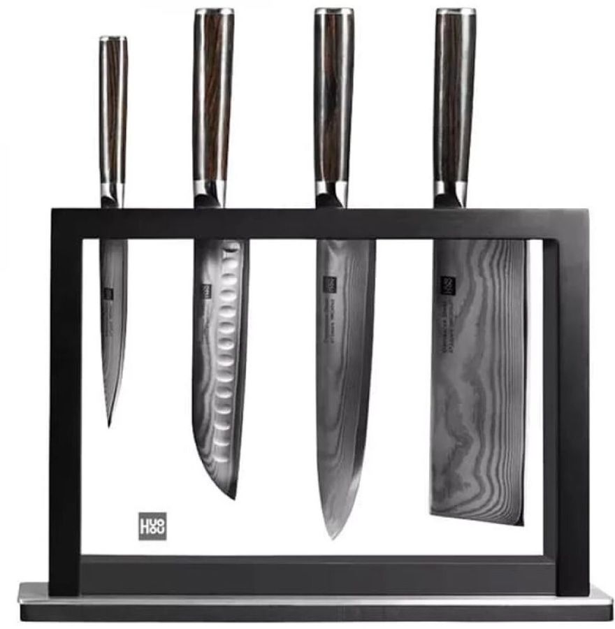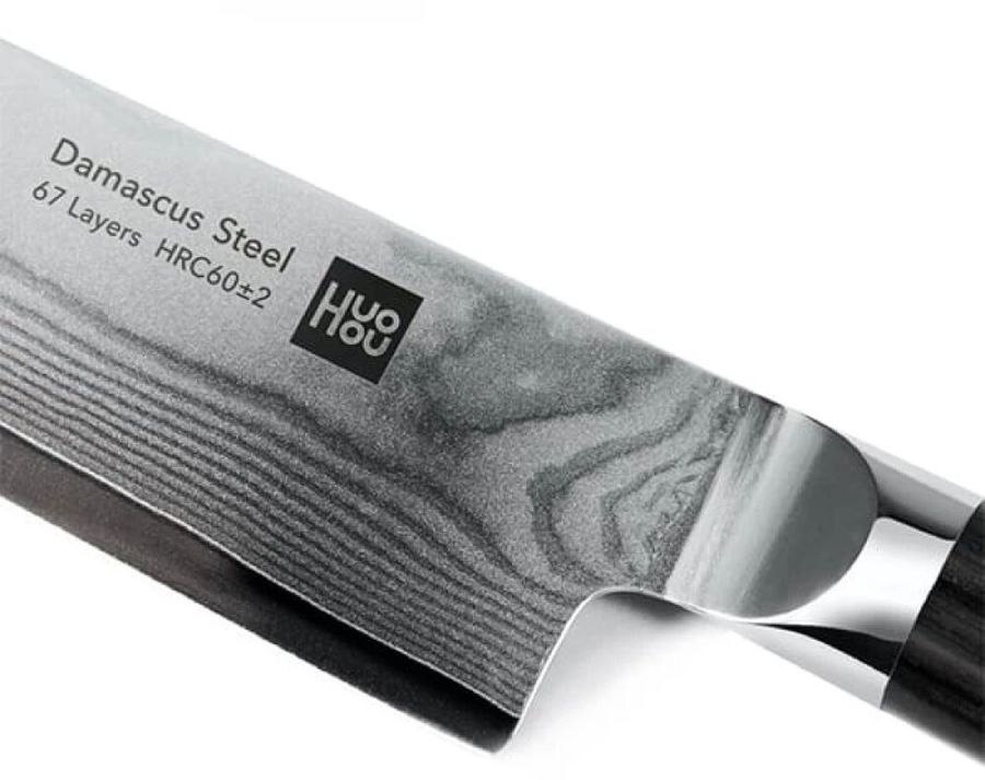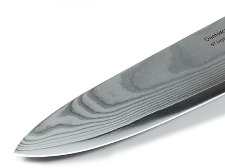 Комплект из 4 кухонных ножей премиум-класса из дамасской стали высокой прочности с удобными рукоятками из натурального черного дерева. С помощью ножей можно легко и безопасно нарезать практически все виды продуктов, от овощей до мяса.