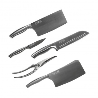 Комплектация Китайский нож-топор цайдао, Нож для чистки овощей, Поварские ножницы, Нож-топор для мяса, Нож шеф-повара, Деревянная подставка