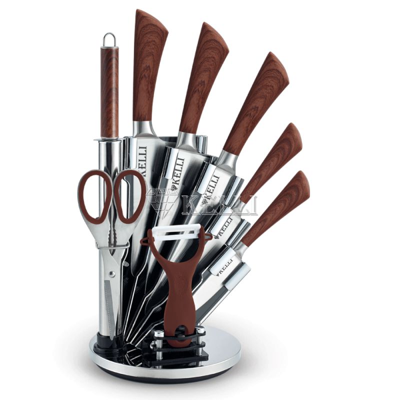 шеф-нож, нож для овощей, кухонный топорик, нож для хлеба, подставка, ножницы, овощечистка, точилка для ножей