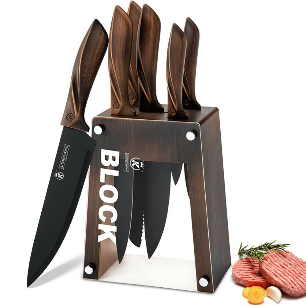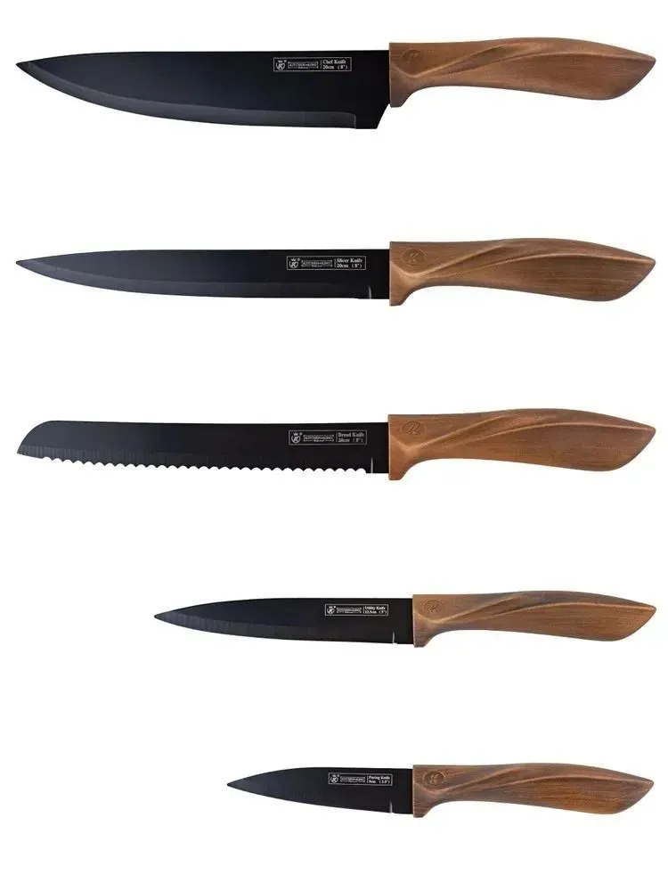 Набор ножей на подставке является практичным и стильным дополнением для вашей кухни. Независимо от того, нужны ли вам ножи для нарезки мяса, овощей или хлеба, этот набор имеет все необходимое.
