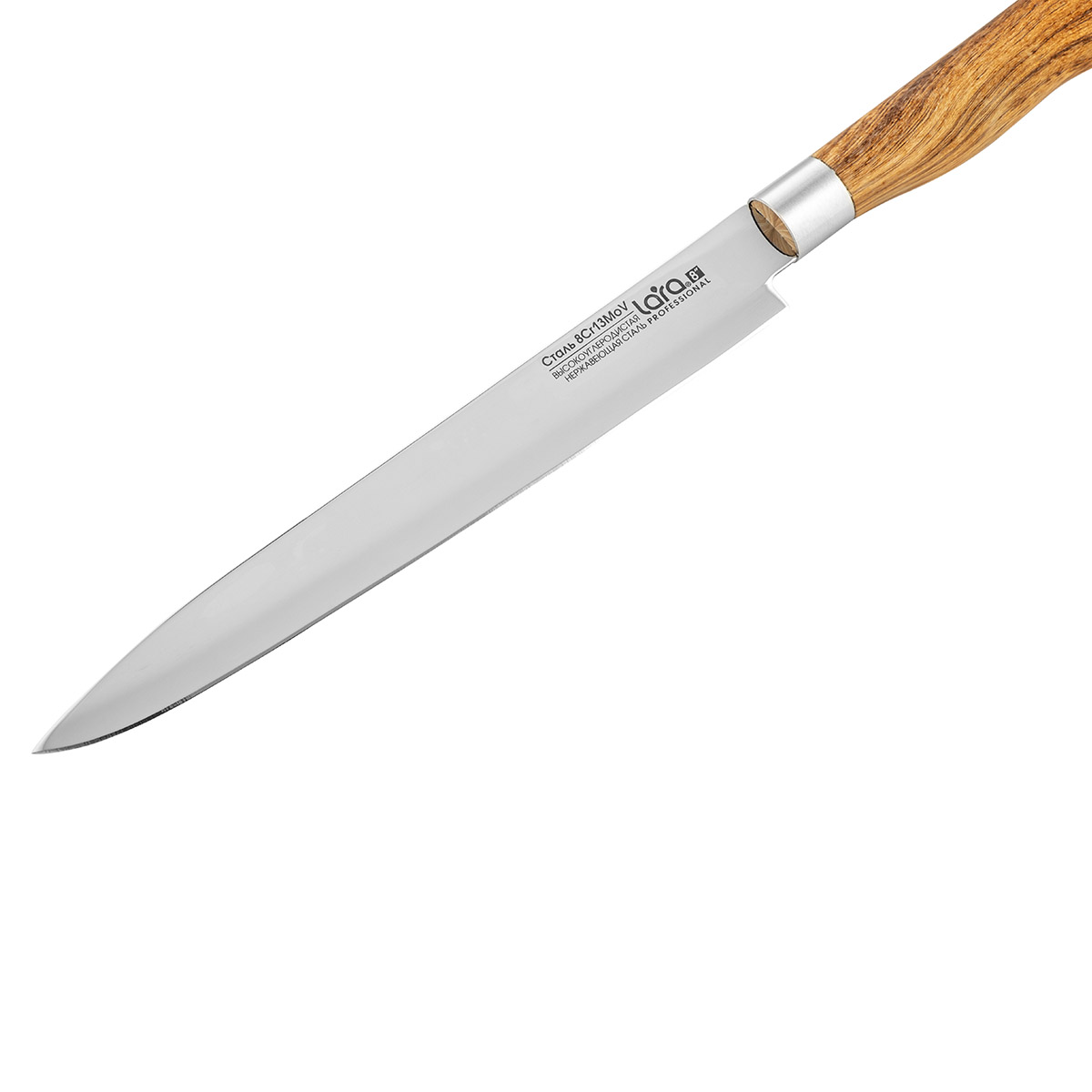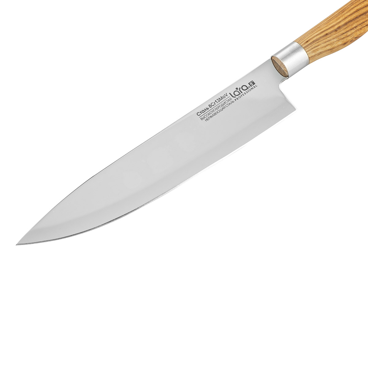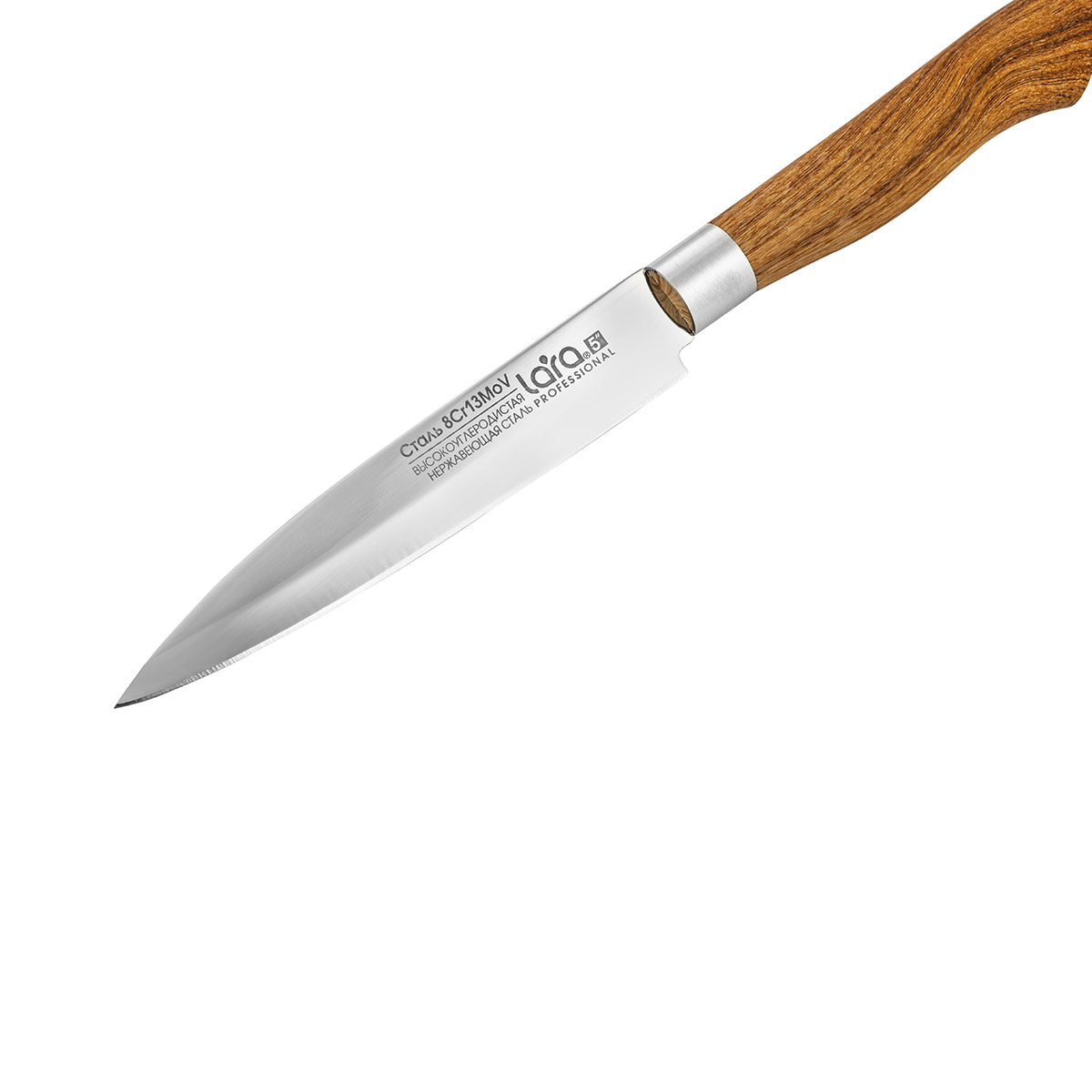 Все ножи выполнены из высокоуглеродистой нержавеющей стали марки 3Cr13 с зеркальной полировкой.