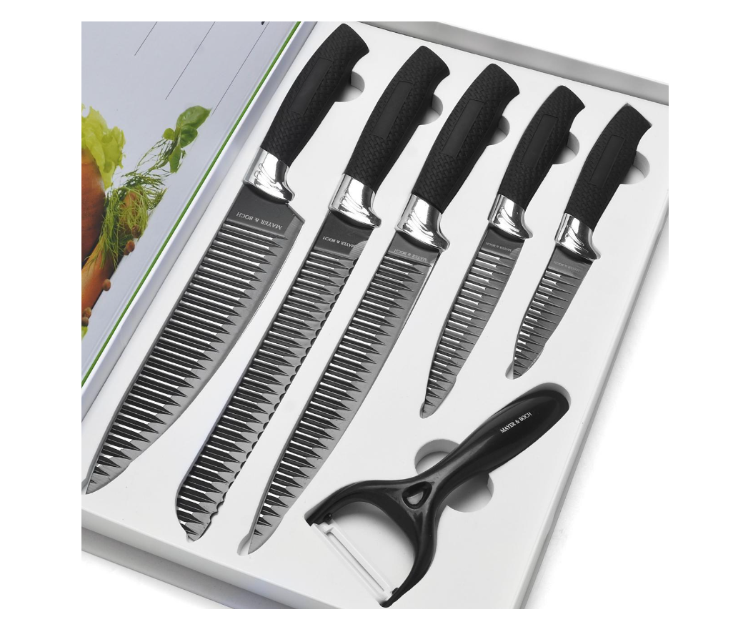 Набор ножей с лезвиями из высококачественной нержавеющей стали станет незаменимым помощником на вашей кухне.