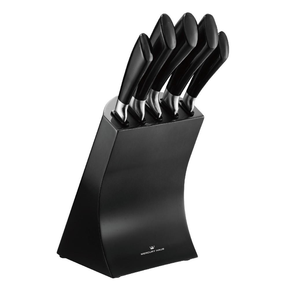 Комплектация поварской нож (20 см), нож для хлеба (20 см), нож для нарезки (20 см), универсальный нож (12.5 см), нож для чистки овощей (9 см), подставка для ножей