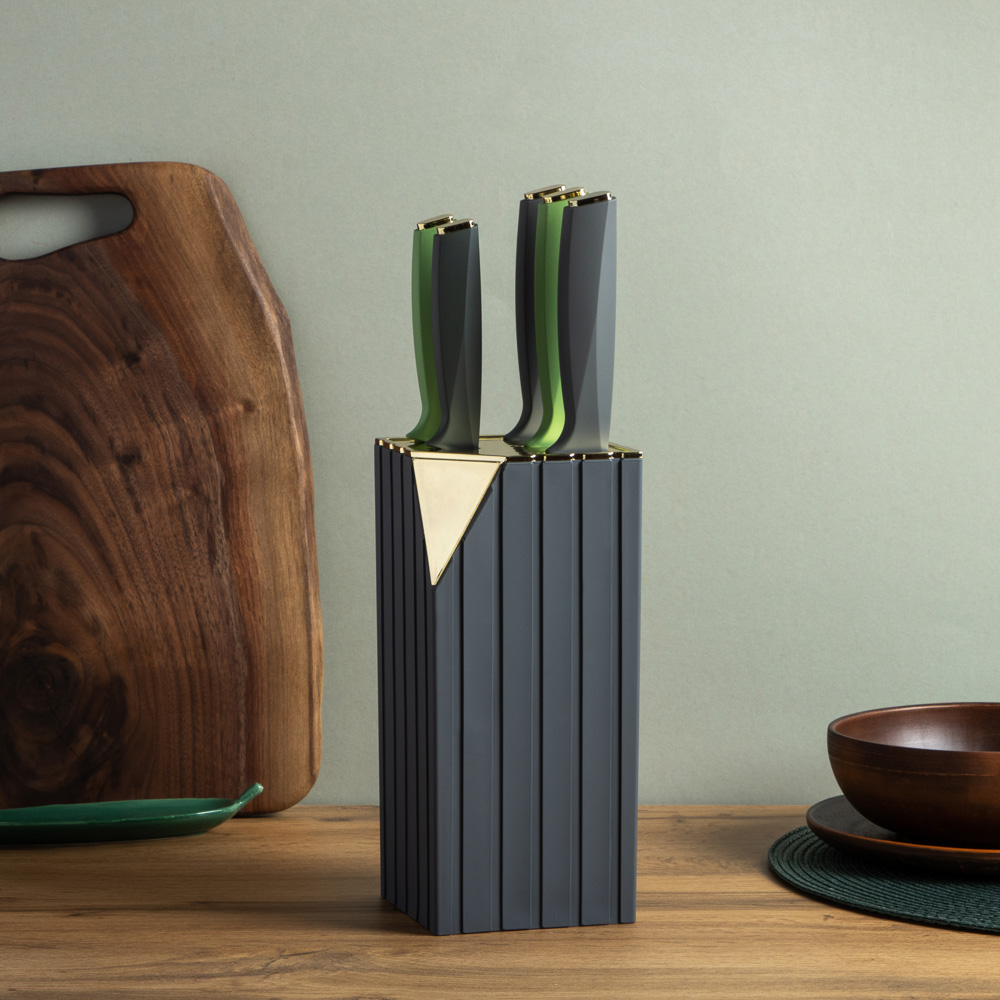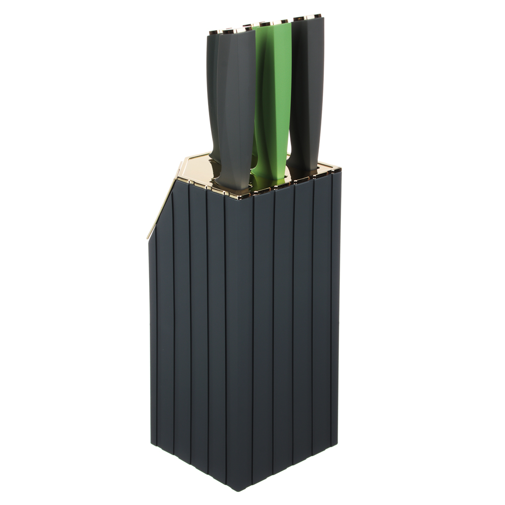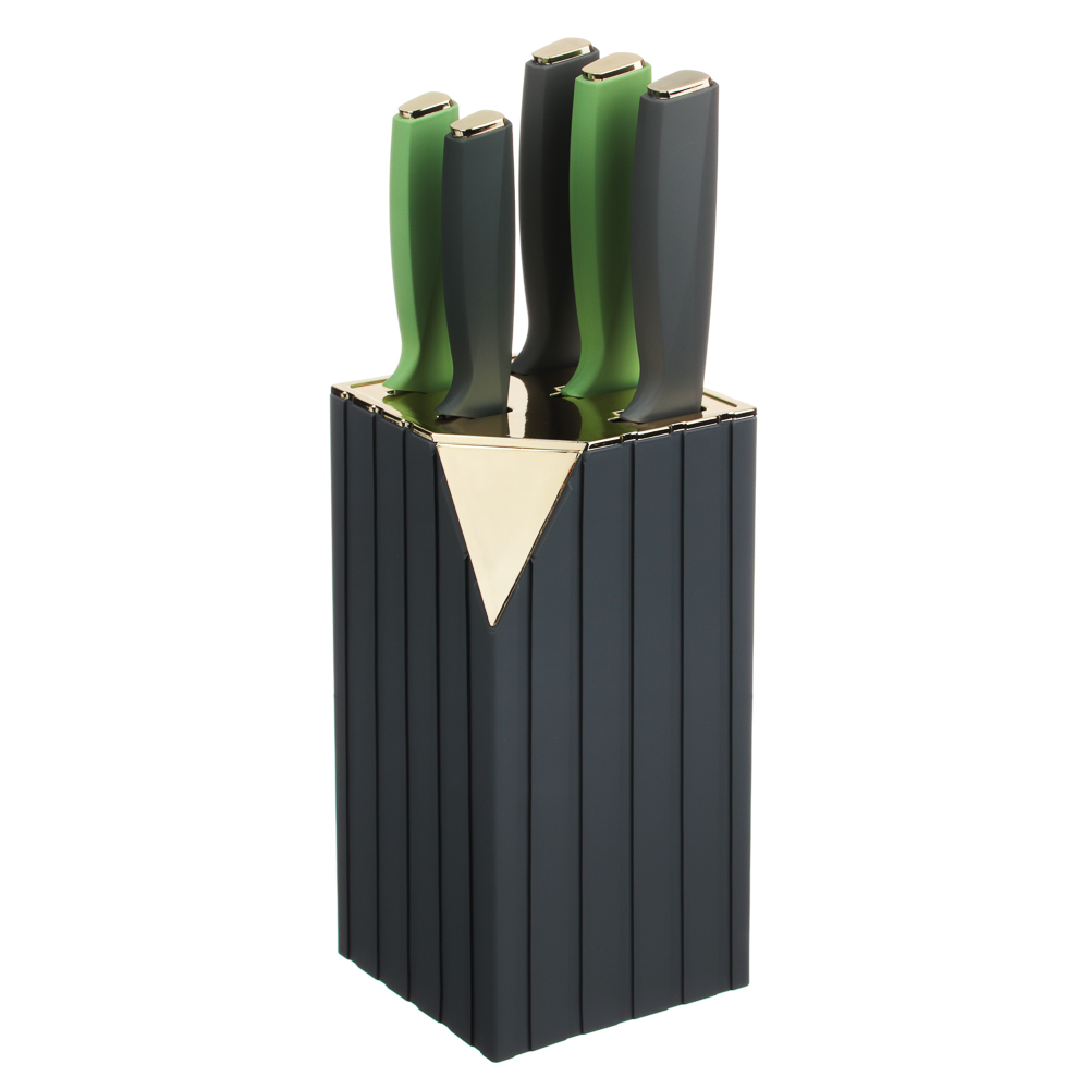 Набор кухонных ножей «Орис» включает 5 ножей и подставку-держатель из полипропилена.