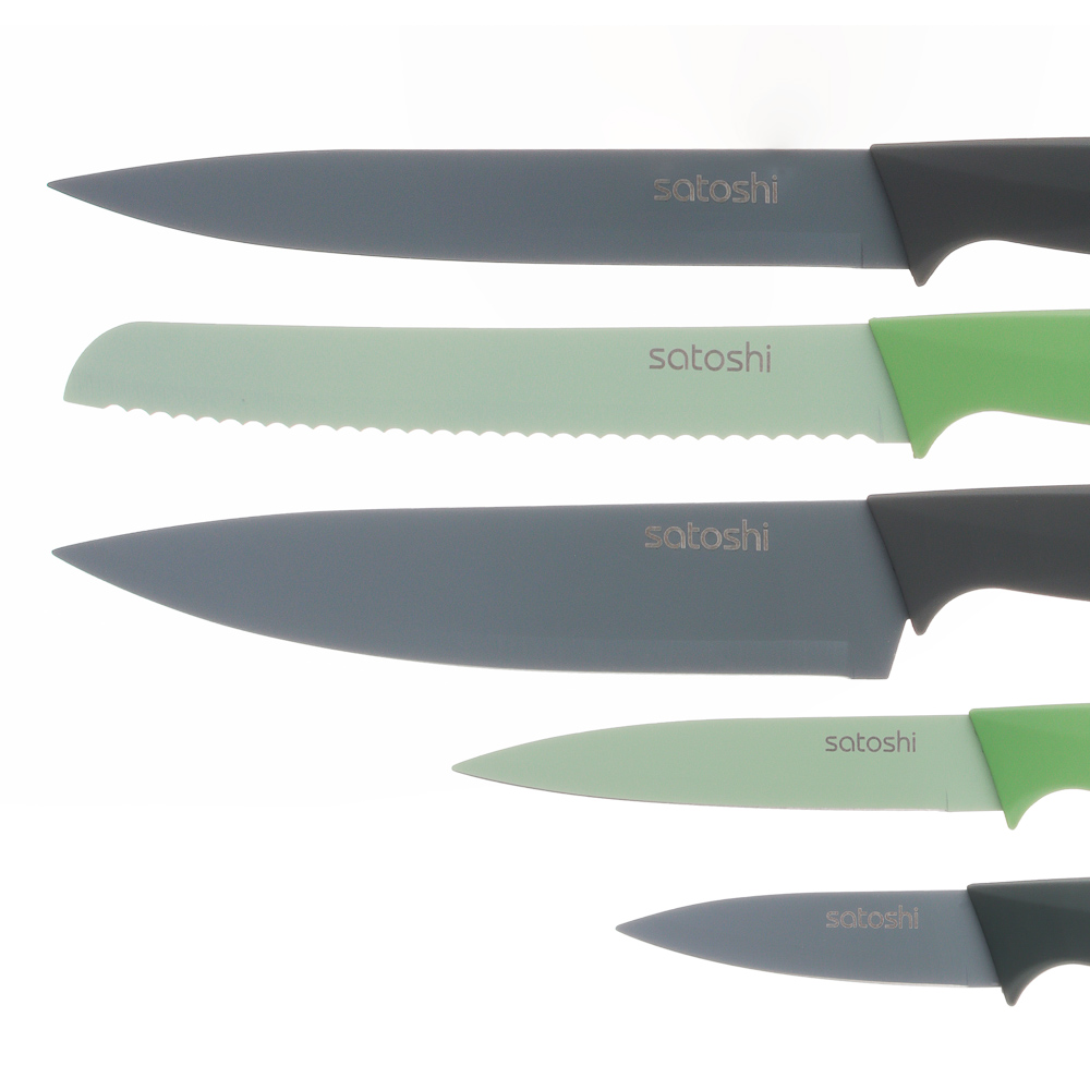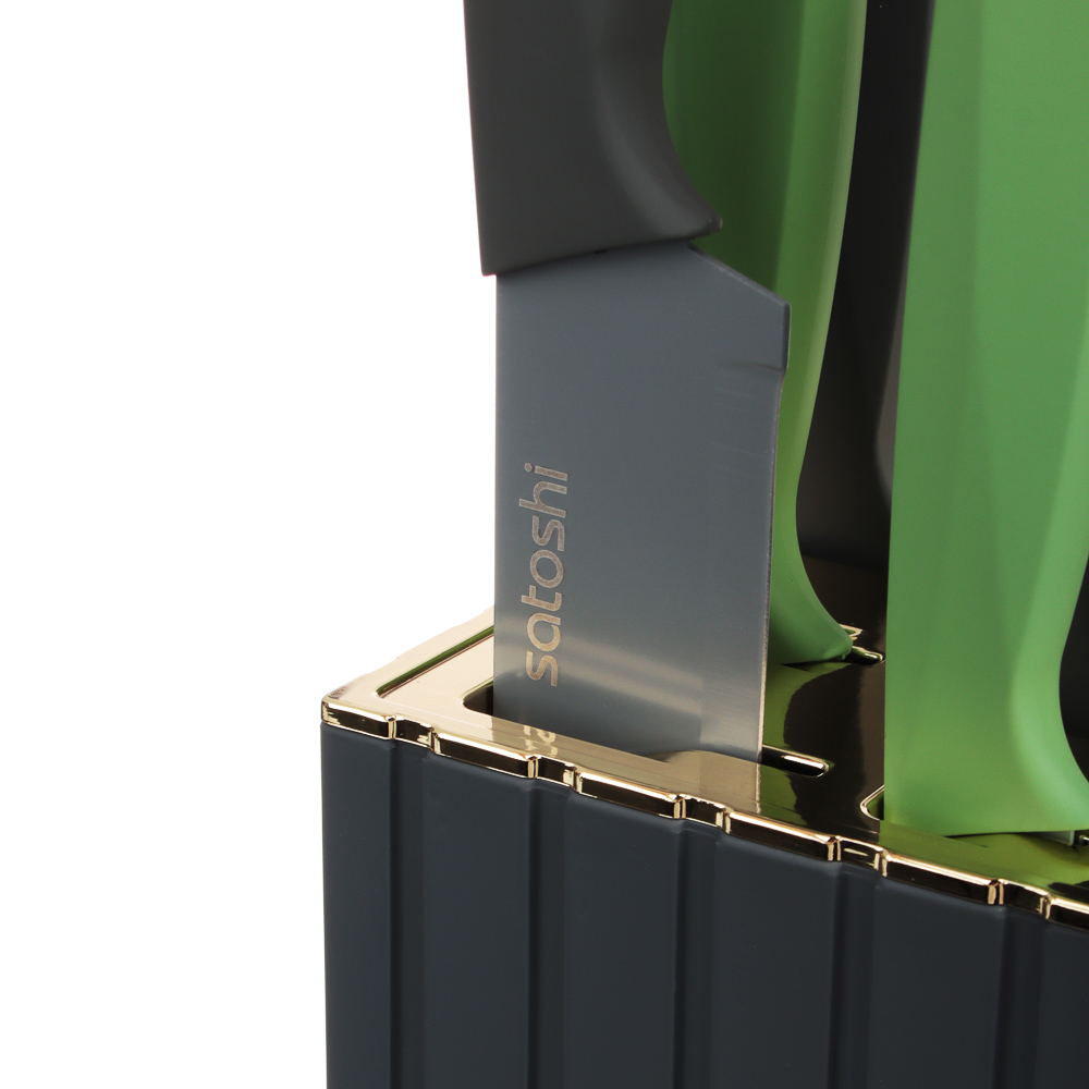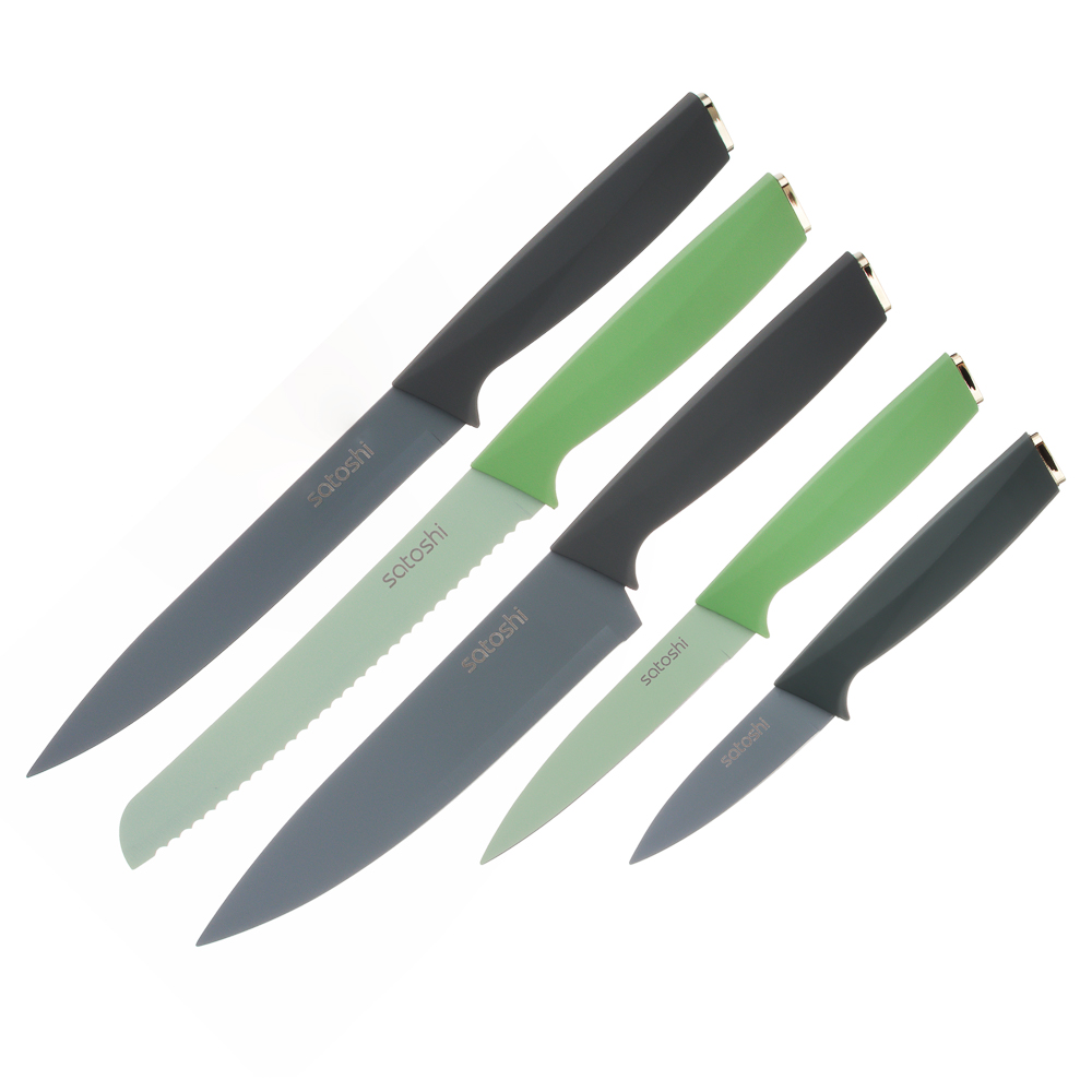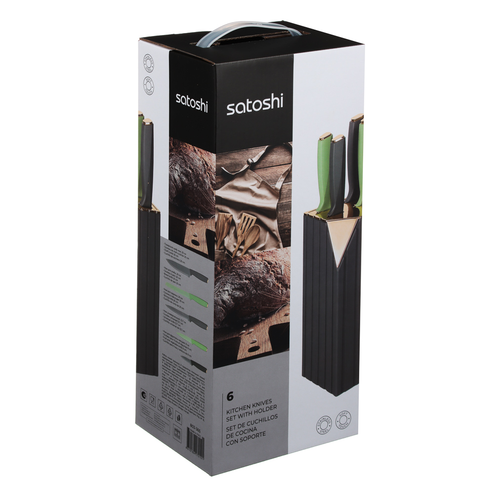Набор кухонных ножей «Орис» включает 5 ножей и подставку-держатель из полипропилена.