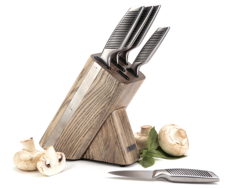 За счёт особой формы рукояти удобно ложатся в ладонь, а специальная перфорация обеспечивает хорошее удержание. Вы не уроните нож даже из мокрой руки. Очищать аксессуары можно вручную или в посудомоечной машине.