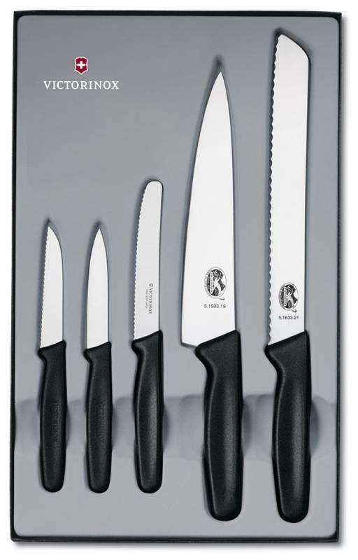 Описание: Набор ножей их высококачественной стали. В комплекте ножи: для очистки - 2 шт (длина лезвия 8 см), разделочный (длина лезвия 19 см), для хлеба (длина лезвия 21 см), для томатов (длина лезвия 11 см). Удобные пластиковые ручки. Подарочная коробка.