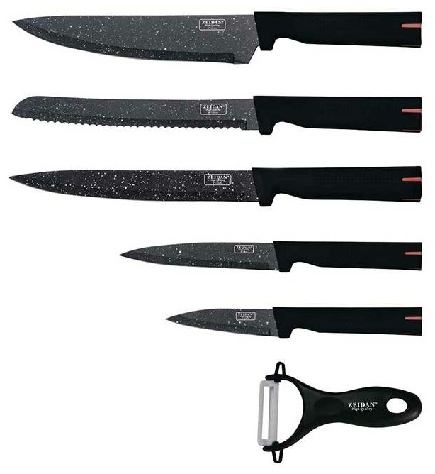 Лезвия ножей изготовлены из высококачественной нержавеющей стали С мраморным анибактериальным покрытием и имеют безупречную заточку и оптимальную жесткость.