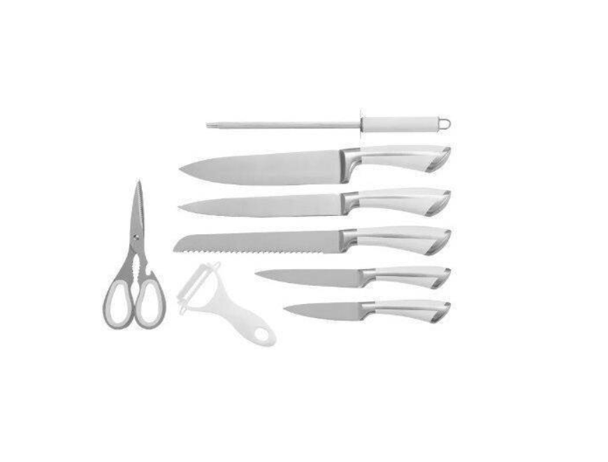 Аксессуары в наборе ножей: Подставка, Кухонный топорик, Точилка для ножей, Ножницы, Овощечистка