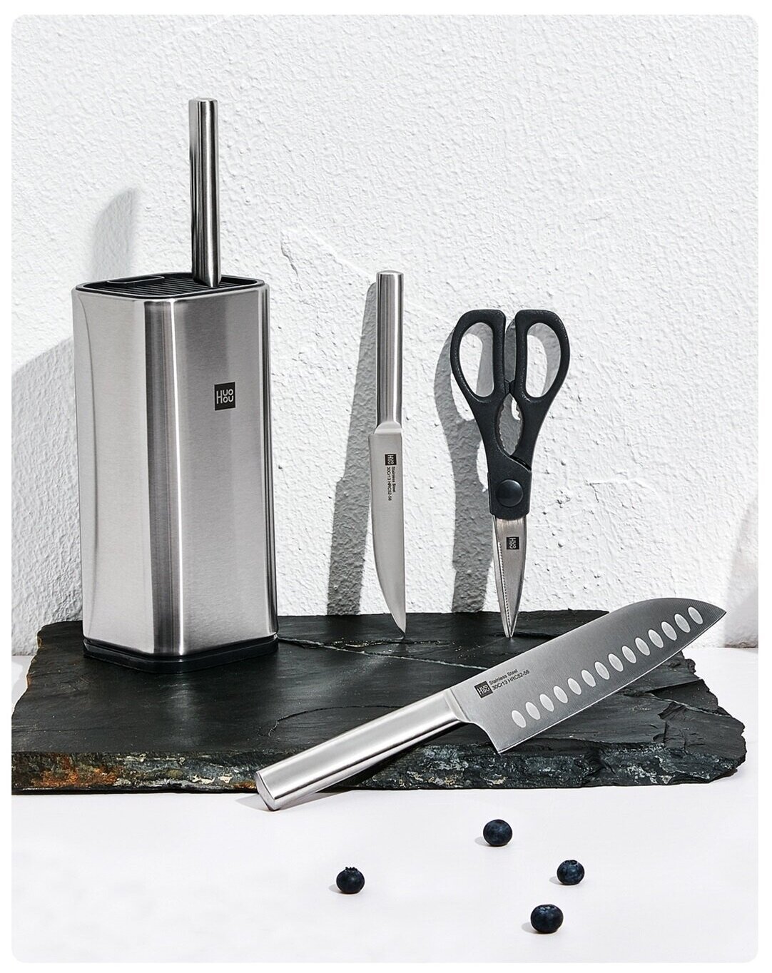 Все ножи имеют современный стильный дизайн. Комплект станет незаменимым аксессуаром на вашей кухне. Подставка обеспечит комфортное хранение и удобный доступ к каждому инструменту
