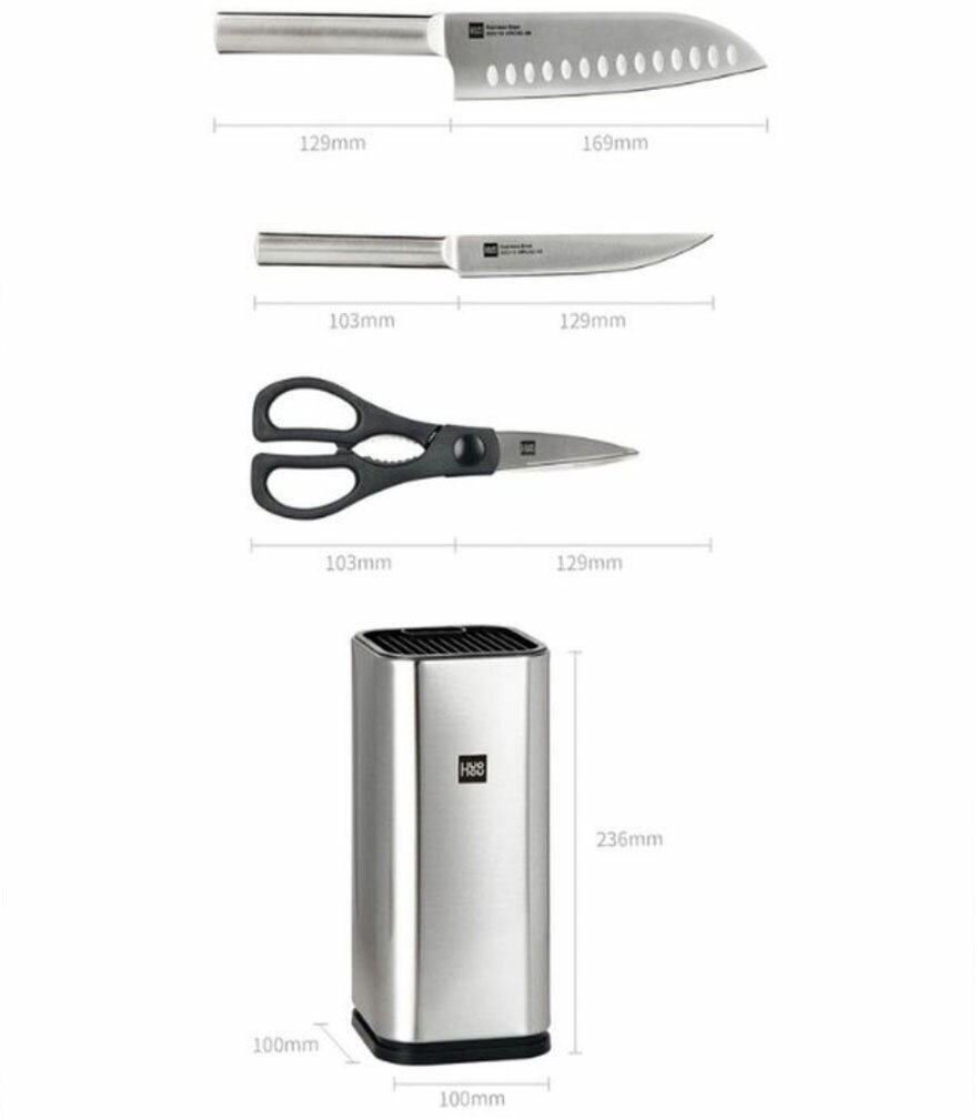 Каждый нож является цельнометаллическим и оснащен удобной рукояткой, которую комфортно держать в руке. Рукоятка не теряет своей формы даже при высокой температуре, то есть вы сможете спокойно промывать ножи и ножницы под горячей водой и даже кипятком