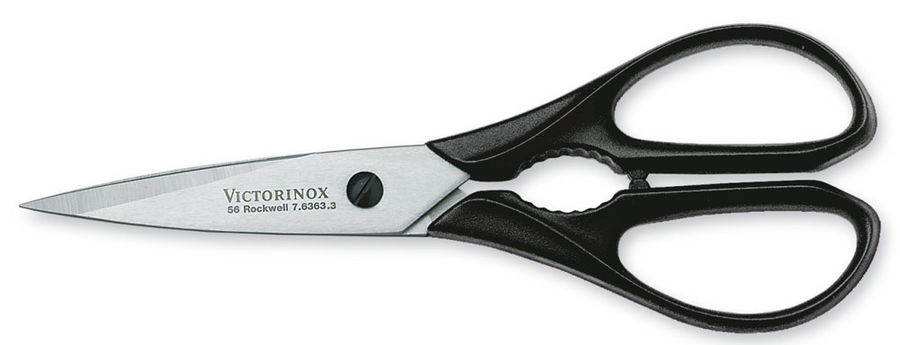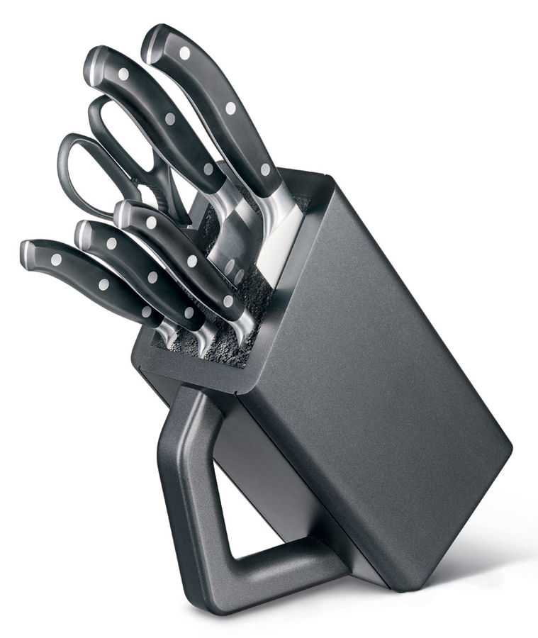 В наборе: кухонные ножницы (7.6363.3), нож для чистки овощей (7.7203.06), нож для стейка (7.7203.12), универсальный нож (7.7203.15), нож "Сантоку" (7.7323.17), нож шеф-повара (7.7403.20). Материал лезвия: Cталь кованая, молибден-ванадиевая (X50 Cr Mo V 15). Материал рукояти: Ацетальная смола.