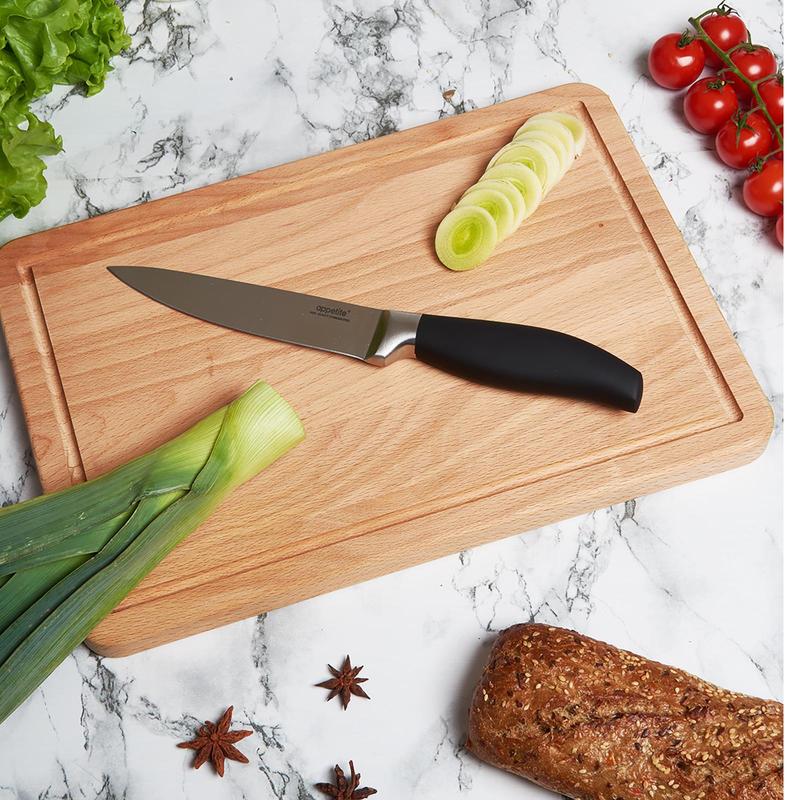 Такой нож предназначен для нарезки овощей, фруктов, сыра, небольших буханок, хлеба, булочек, масла и других продуктов. Лезвия долгое время остаются острыми и не требуют частого затачивания. Этот прибор предназначен для резки продуктов с минимальным усилием, по этой причине его нужно использовать с осторожностью.