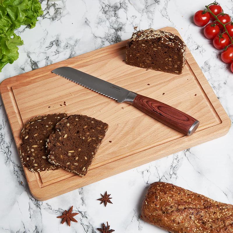 Такой нож предназначен для нарезки хлеба. Лезвия долгое время остаются острыми и не требуют частого затачивания. Этот прибор предназначен для резки продуктов с минимальным усилием, по этой причине его нужно использовать с осторожностью.