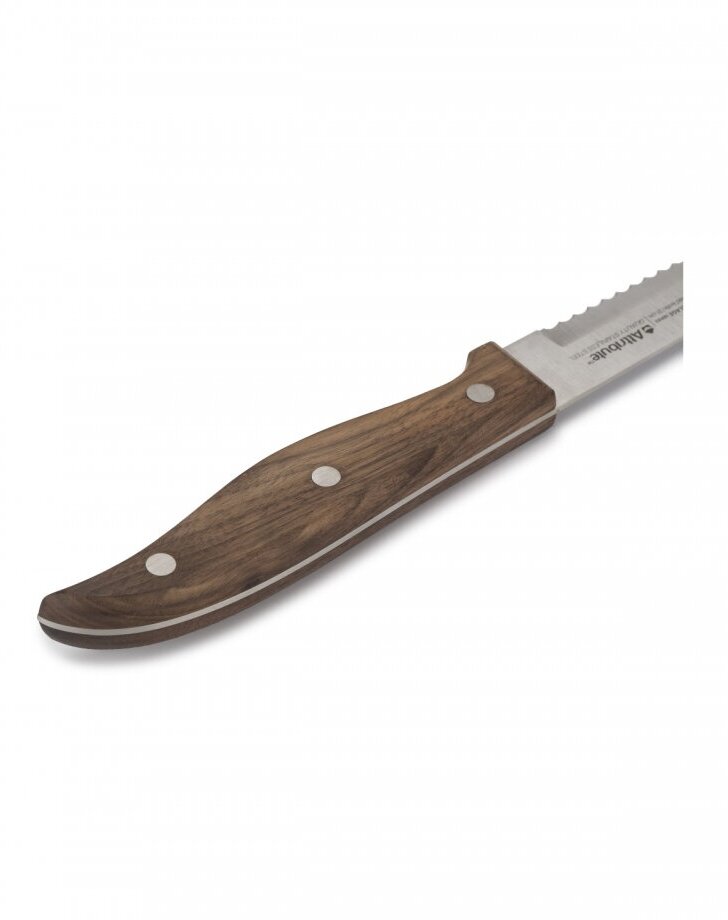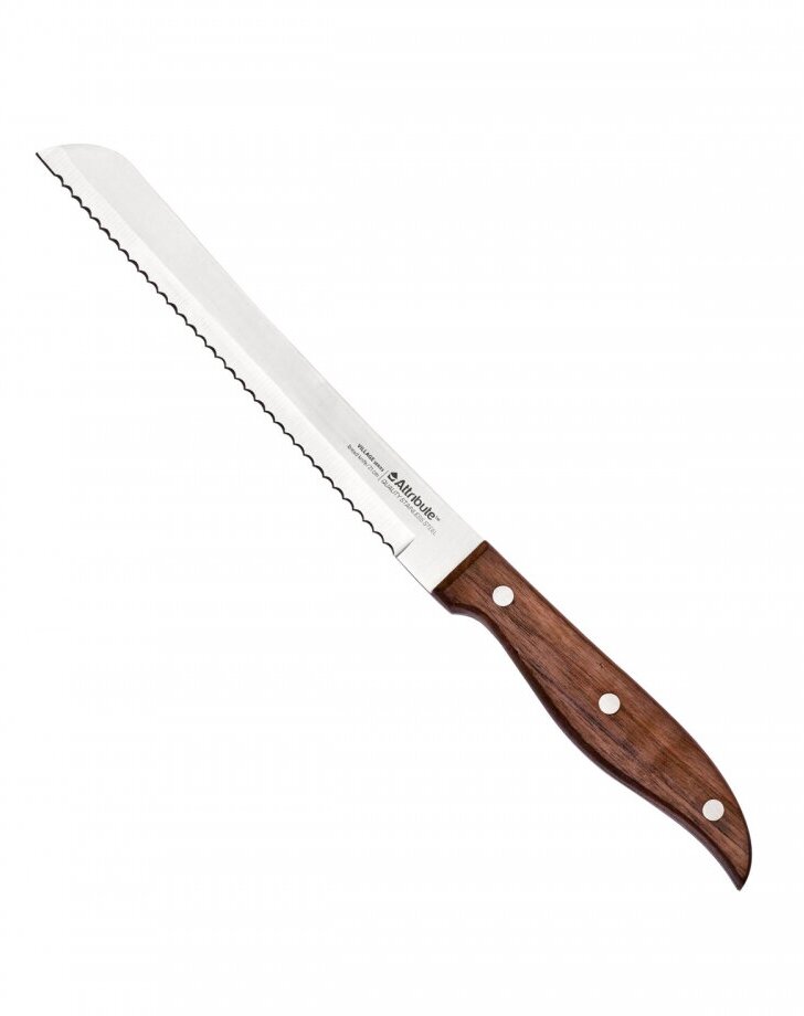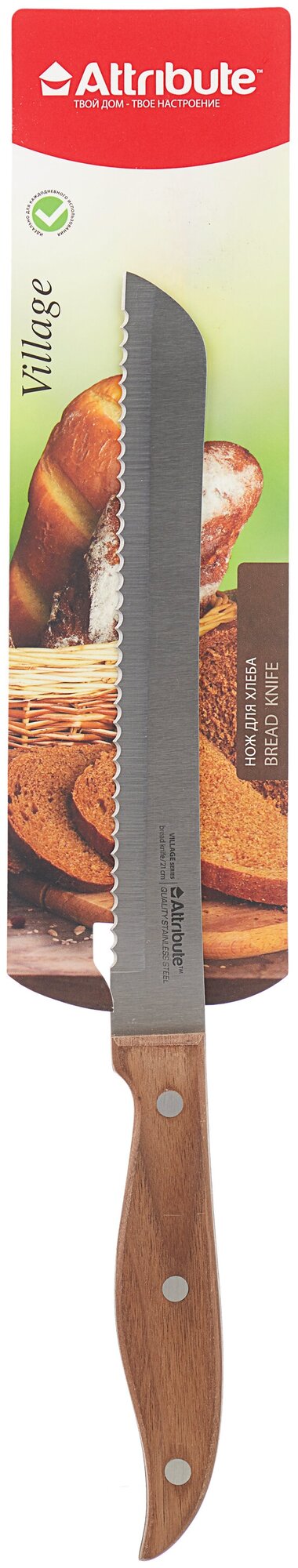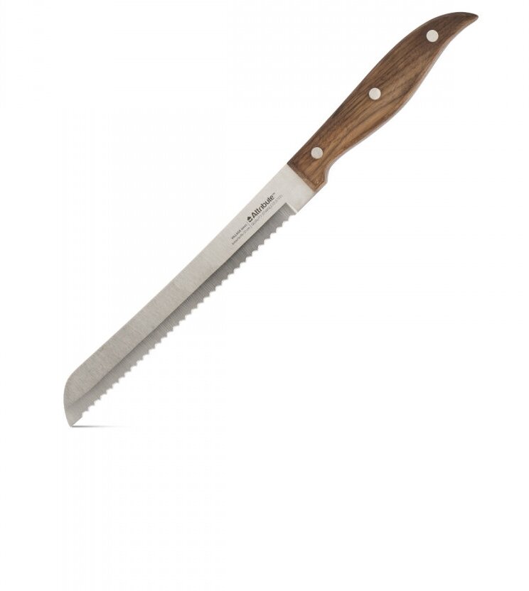 Нож для хлеба имеет особую форму для нарезки свежих хлебобулочных изделий с хрустящей корочкой. Благодаря зазубренному острому лезвию нож легко нарезает хлеб на аккуратные тонкие ломтики и не сминает мякиш. Лезвие изготовлено из экологически чистой высококачественной нержавеющей стали. Особая заточка ножа позволяет лезвию оставаться острым долгое время. Эргономичная ручка из натурального дерева с заостренным концом удобно лежит в руке.