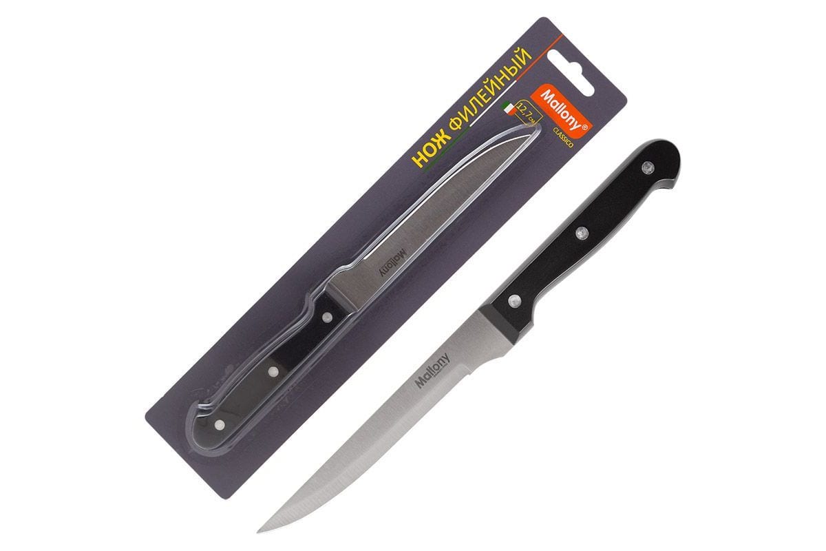 Нож с пластиковой рукояткой изготовлен из прочной стали. Толщина клинка составляет 1.3 мм. Нож имеет стильный дизайн. Подойдет для эксплуатации в быту, на кухне, в местах общественного питания.