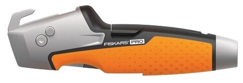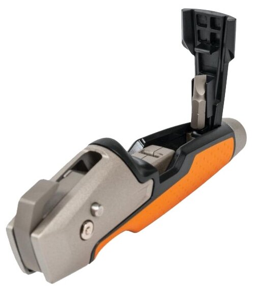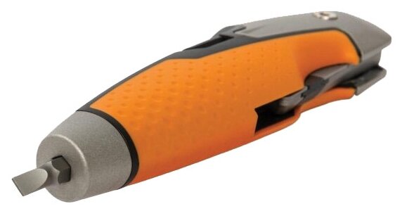 встроена открывалка для банок с краской; присутствует отвертка; специальное покрытие лезвия CarbonMax; рукоятка со структурным покрытием SoftGrip; вес 190 г.