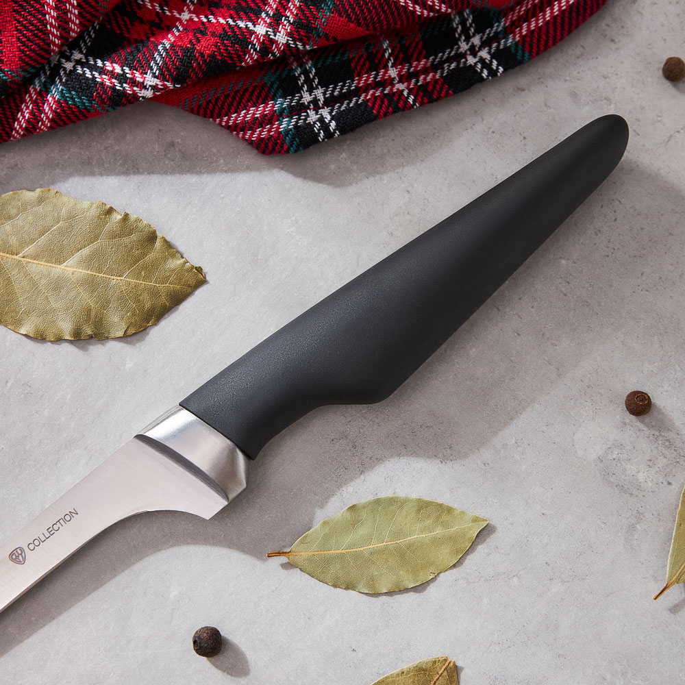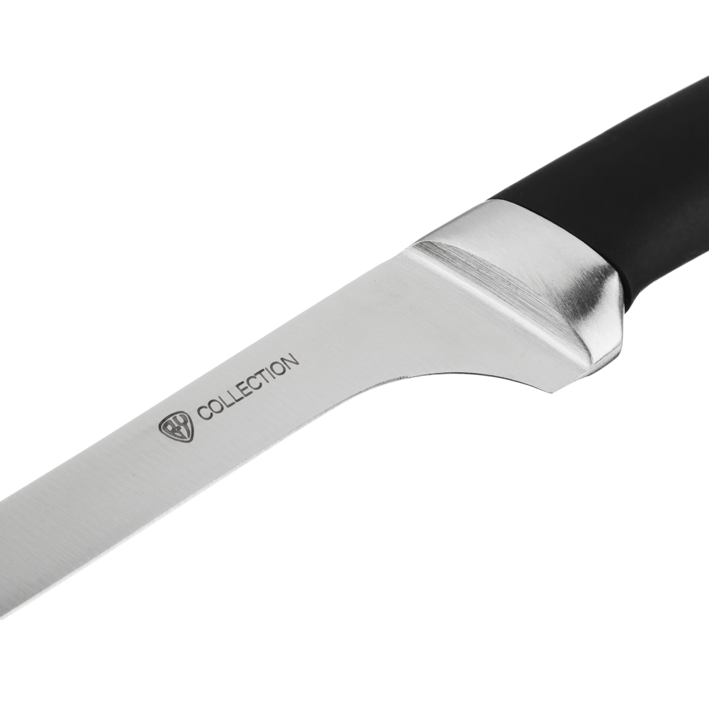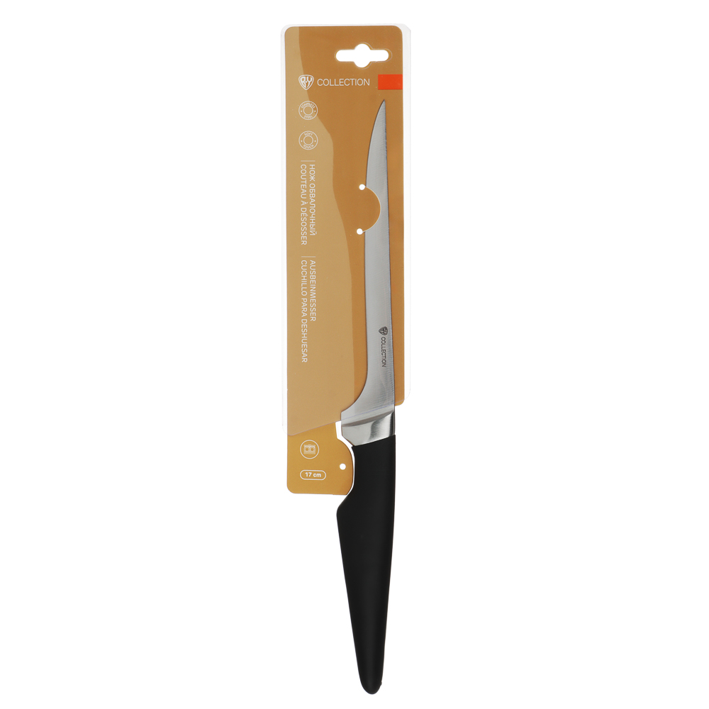 Нож обвалочный BY Pevek - небольшой нож с длиной 17 см. Предназначен для разделки сырого мяса, разделки тушек птицы, для отделения мяса от костей. Клинок имеет определенный угол заточки. Нож хорошо сбалансирован, долго держит заточку.