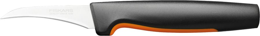 Нож для овощей с изогнутым лезвием Fiskars® Functional Form™ разработан для легкой ежедневной работы и прост в уходе Отлично подходит для чистки круглых корнеплодов Прочное лезвие из японской нержавеющей стали Длина лезвия 68 мм Твердость стали HRC 52 Высокая производительность резки.