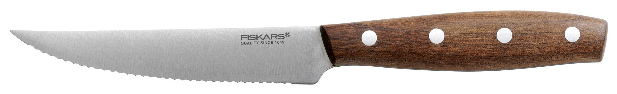 Описание: Norr - это сочетание классического скандинавского дизайна и высококачественных материалов. Универсальный нож среднего размера с зубчатым лезвием для нарезания овощей и фруктов с тонкой кожурой. Также может использоваться для сервировки стола.