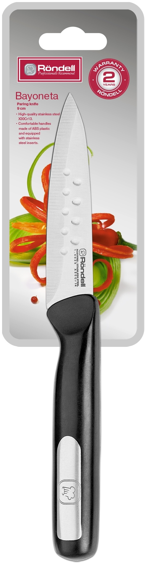 Материал клинка: высококачественная нержавеющая сталь X30Cr14. Материал рукоятки: комбинированная: ударопрочный пластик и нержавеющая сталь. Преимущества: лезвия ножей с эффектом anti-stick - продукты не прилипают к лезвию в процессе их нарезки. Использование: не подходит для посудомоечной машины.