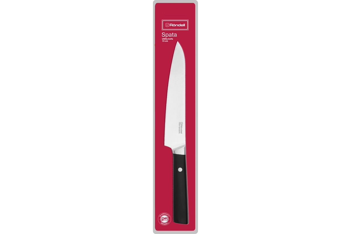 Материал клинка: высококачественная немецкая нержавеющая сталь X50CrMoV15. Особенности клинка: идеальная балансировка. Материал рукоятки: ABS пластик. Основной цвет - черный. Использование: не подходит для посудомоечной машины.