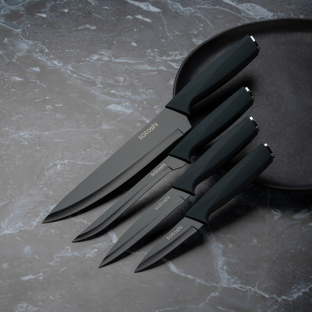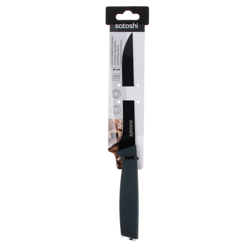 Нож кухонный 15 см SATOSHI «Орис» с лезвием из нержавеющей стали и антиналипающим покрытием станет вашим главным помощником на кухне. Имеет эргономичную рукоять с покрытием Soft-Touch, благодаря чему изделие не выскальзывает из рук и не вызывает усталости даже при длительной работе по нарезке. Острое лезвие с легкостью разрезает овощи, фрукты, мясные деликатесы и другие продукты на тонкие ломтики. Изделие долго держит заточку, не боится длительного контакта с кислотами, легко моется. Имеет строгий стильный дизайн.