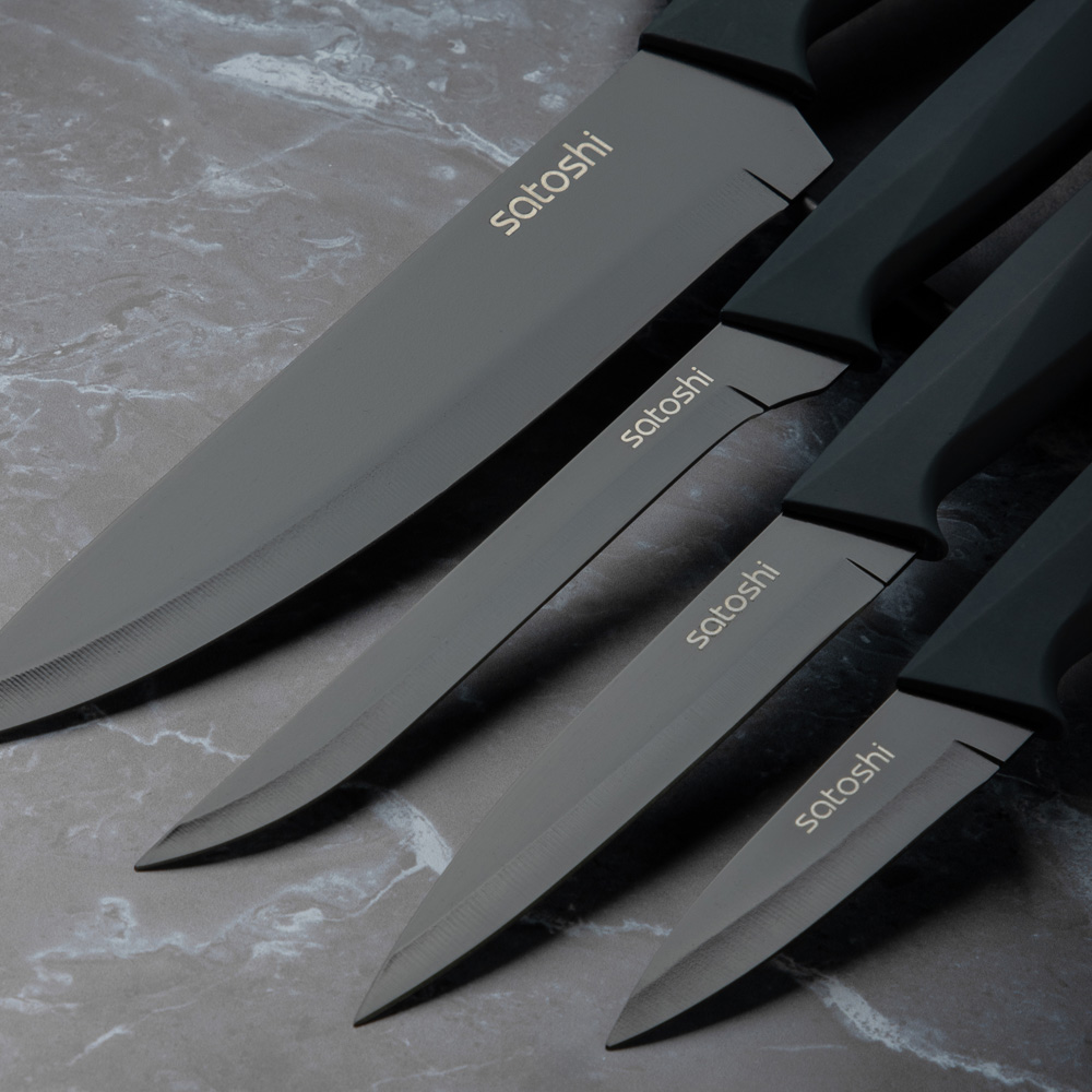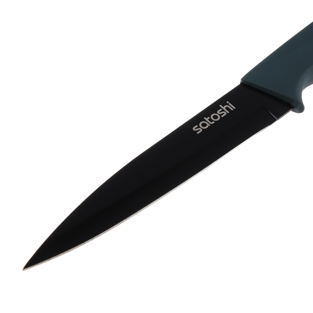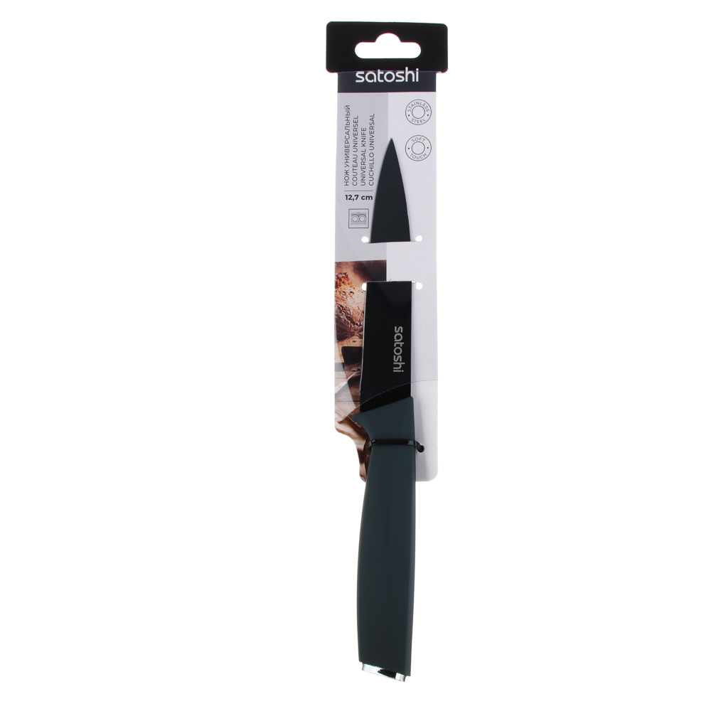 Нож кухонный 12,7 см SATOSHI «Орис» с лезвием из нержавеющей стали и антиналипающим покрытием станет вашим главным помощником на кухне. Имеет эргономичную рукоять с покрытием Soft-Touch, благодаря чему изделие не выскальзывает из рук и не вызывает усталости даже при длительной работе по нарезке. Острое лезвие с легкостью разрезает овощи, фрукты, мясные деликатесы и другие продукты на тонкие ломтики. Изделие долго держит заточку, не боится длительного контакта с кислотами, легко моется. Имеет строгий стильный дизайн.
